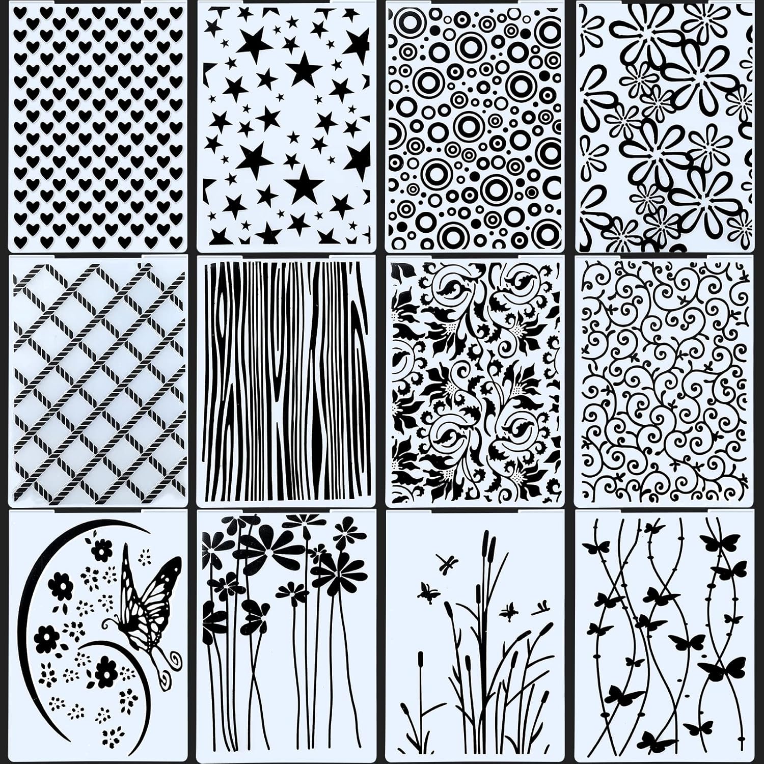 12 Pieces Embossing Folders DIY Craft Template Stencil Butterfly Star Embossing Templates Paper Card Decorating Mold Scrapbook Album Making Tool for Card Scrapbook DIY Craft, 11.7 x 3.9 Inch