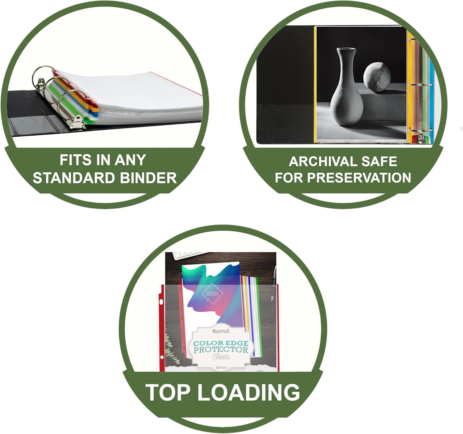 Samsill Color Edge Sheet Protectors 8.5 x 11 Inch, Page Protectors for 3 Ring Binder, Standard Weight, Clear Sheet Protector, Letter Size, Top Loading, Acid Free, 100 Pack