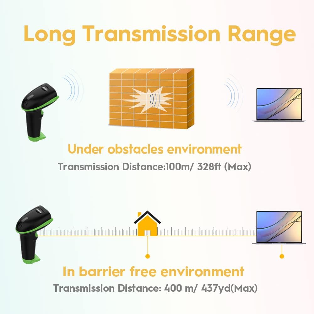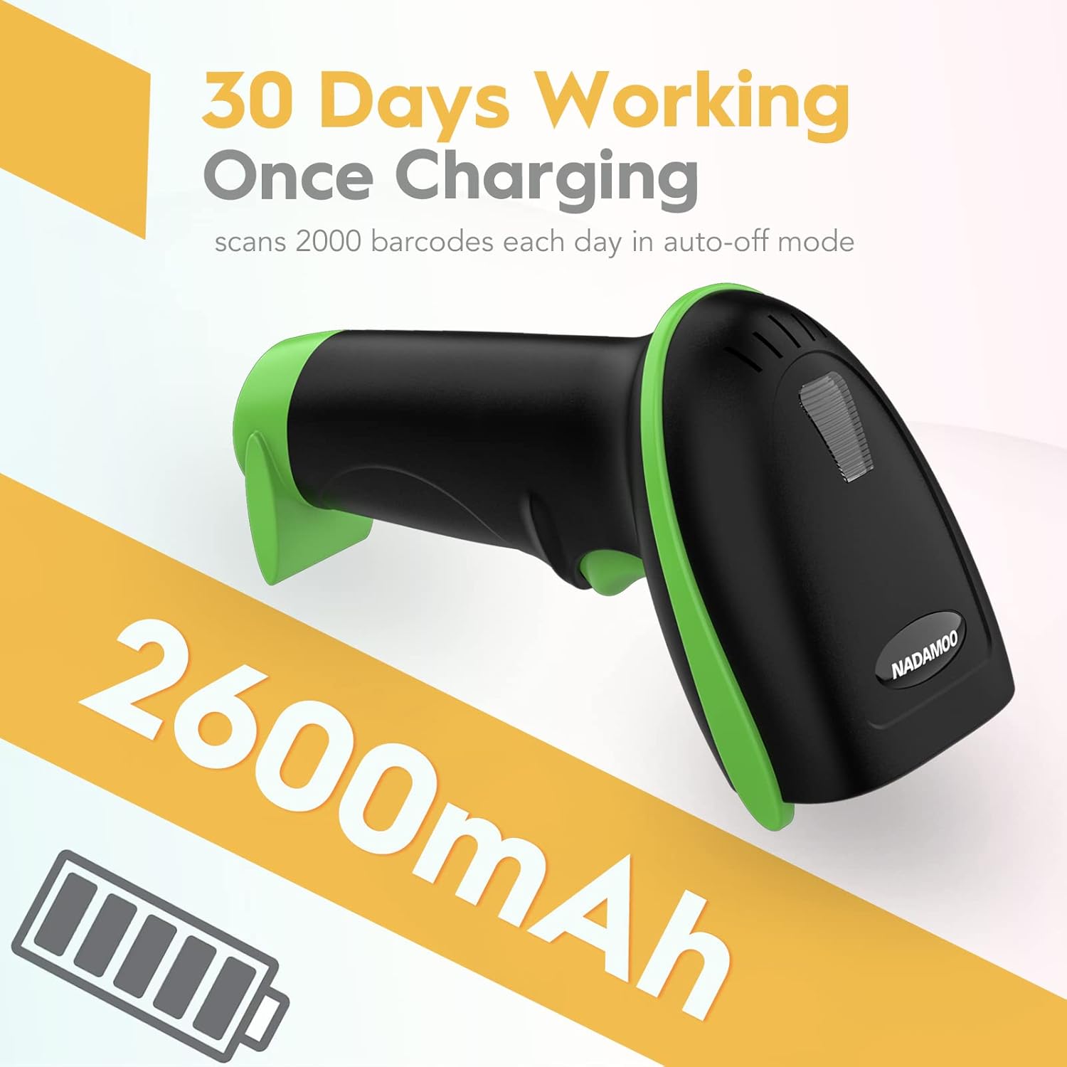 - Come with 2600mAh Large Battery, full charge allows 30 working days if scans 2000 barcodes a day, which can greatly extend working hours and improve your work efficiency.