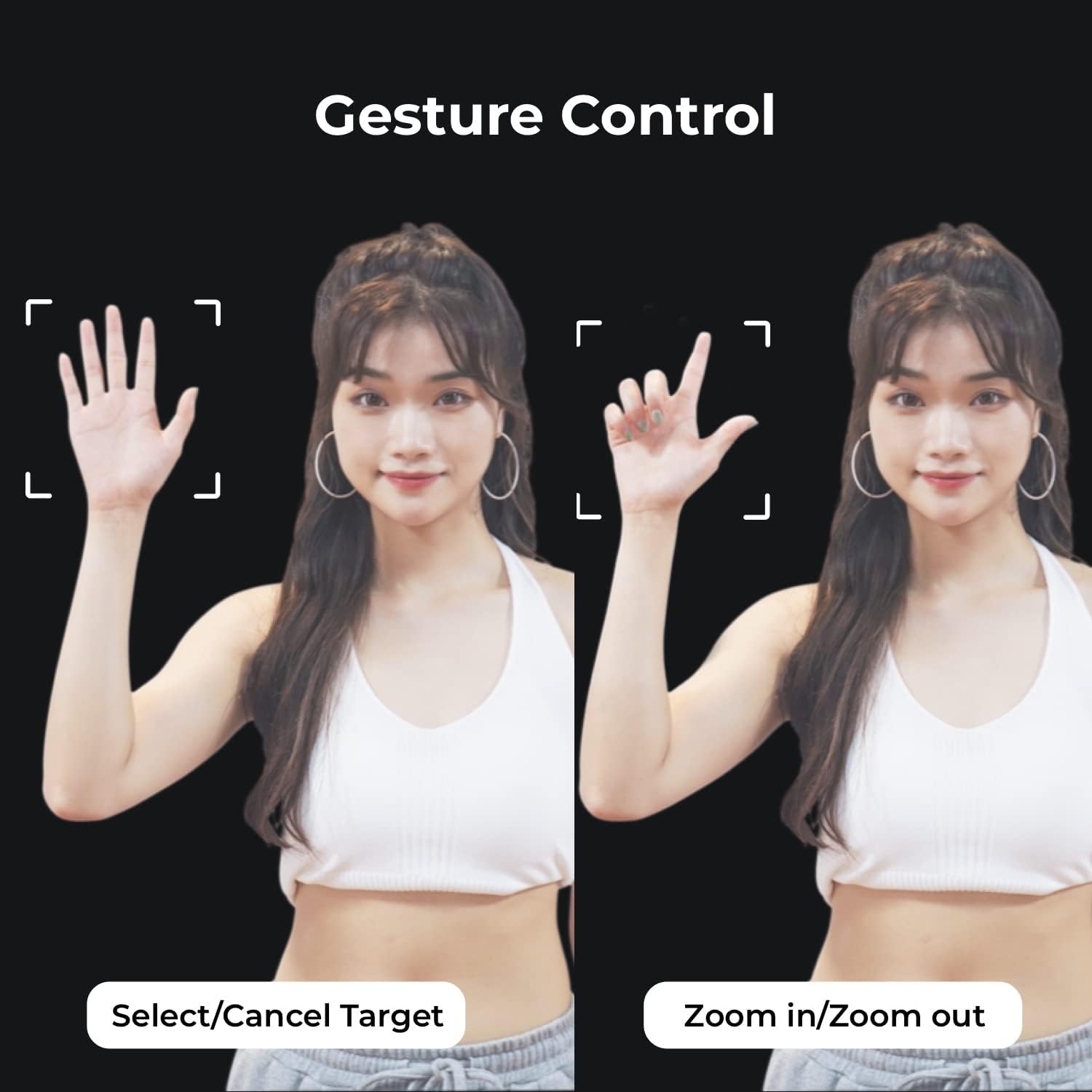 - ใ๐๐ฎ๐ป๐๐ฎ๐๐๐ถ๐ฐ ๐๐ฒ๐๐๐๐ฟ๐ฒ ๐๐ผ๐ป๐๐ฟ๐ผ๐นใSimple gestures to the streaming camera allow you to track and zoom in and out, eliminating the need to carry a remote control with you during presentations.โ = Enable AI tracking | ๐ = Zoom in/out.