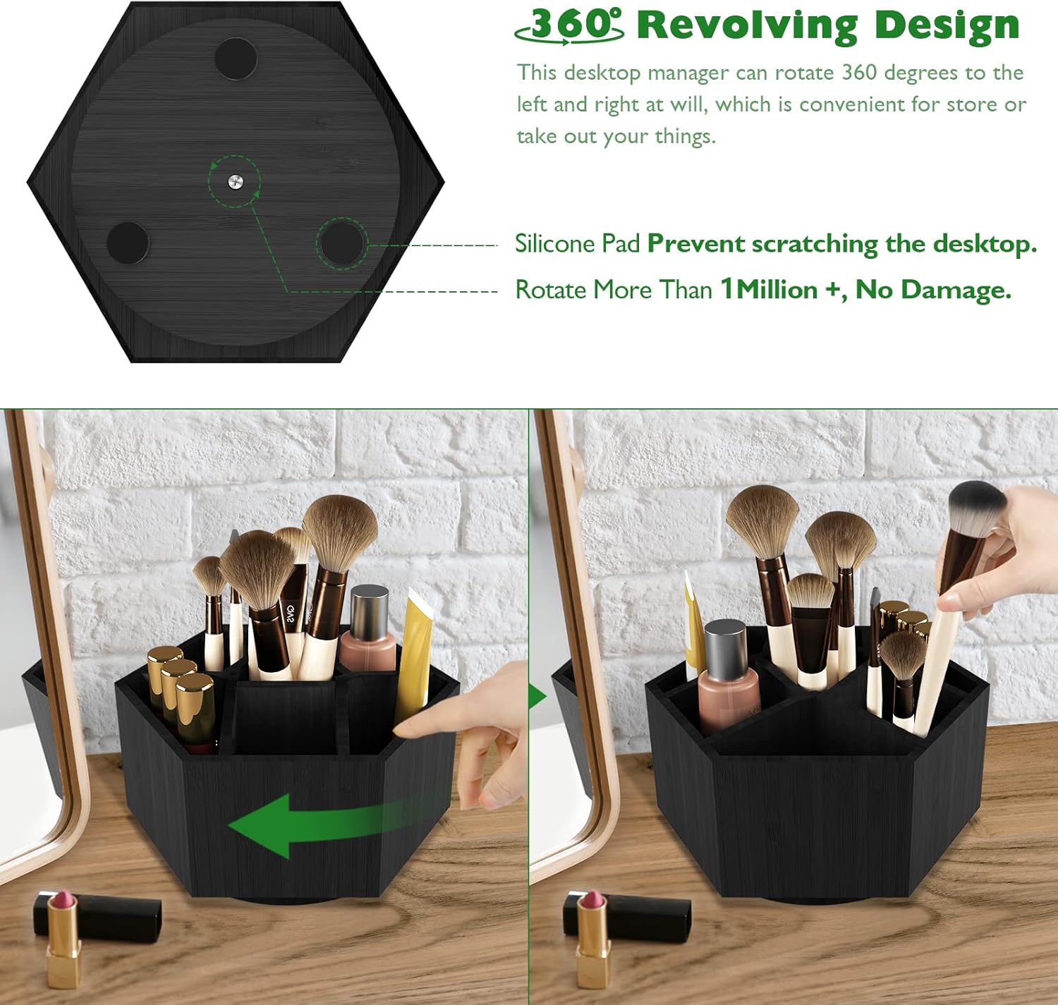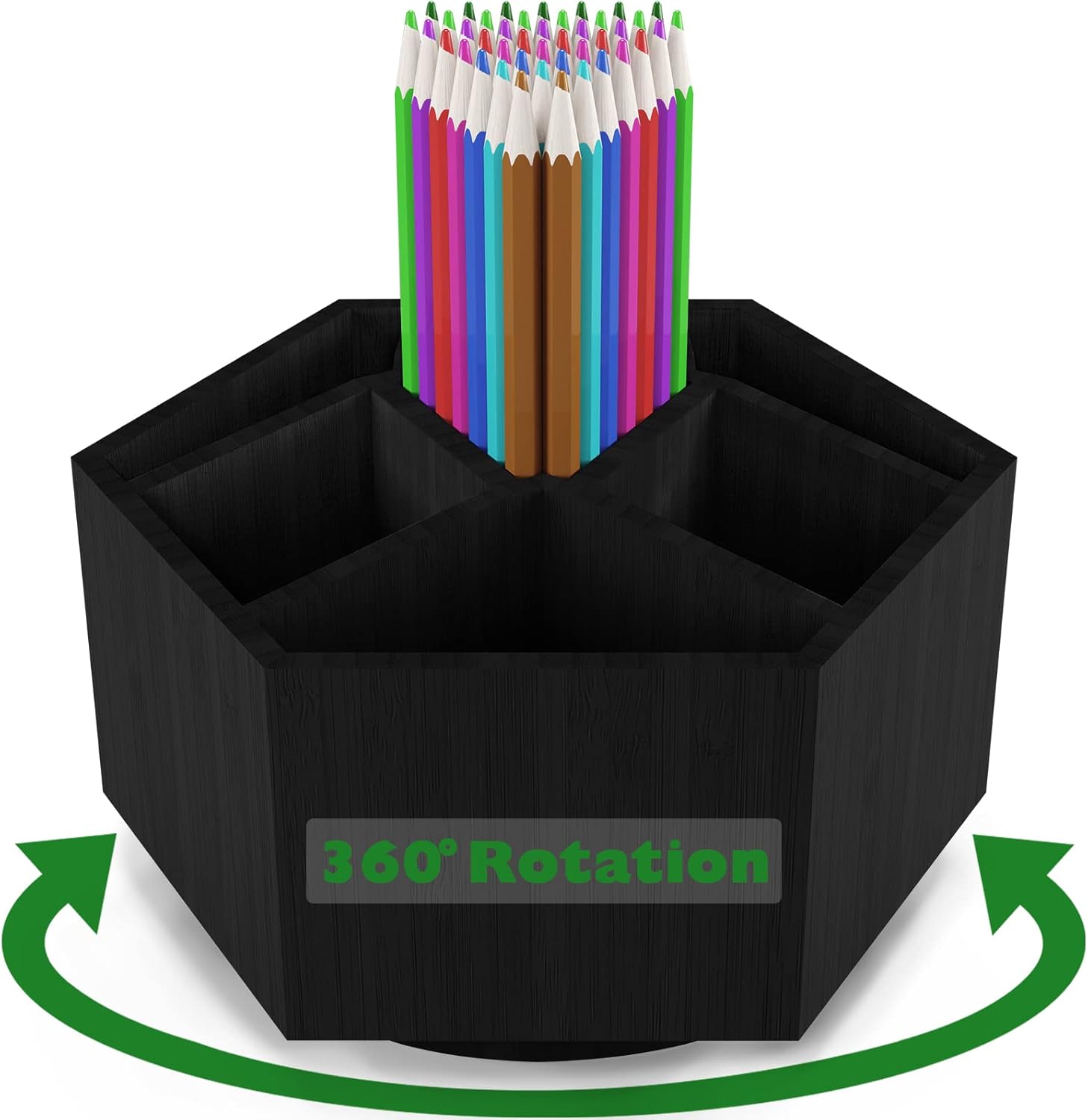 - ăMULTIFUNCTIONAL PURPOSEăThe spinning organizer is designed to keep your stuff well organized, 7 sections, 1 big triangle section in middle will be perfect for your pens, crayons, scissors, paint brushes, scissors, staplers stationery, cutlery and more. The elegant design of our desktop storage organizer makes it perfect to use for classroom, living room, office supplies