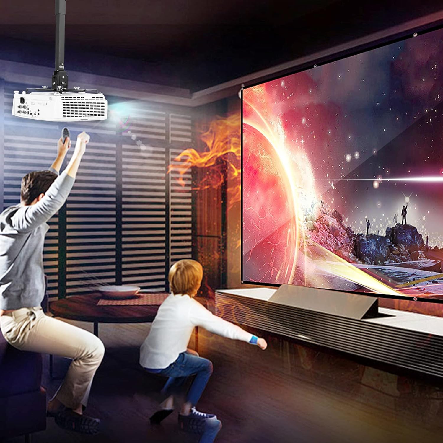 - GREAT PROJECTOR HOLDER: The ceiling projector mount for the projector saves on space and offers perfect viewing positions. The Black powder-coated finish blends well with the majority of home and office environments, It is compatible with Epson/Emerson/BenQ/Fangor/Vankyo/Acer/Artlii/Optoma and most projectors