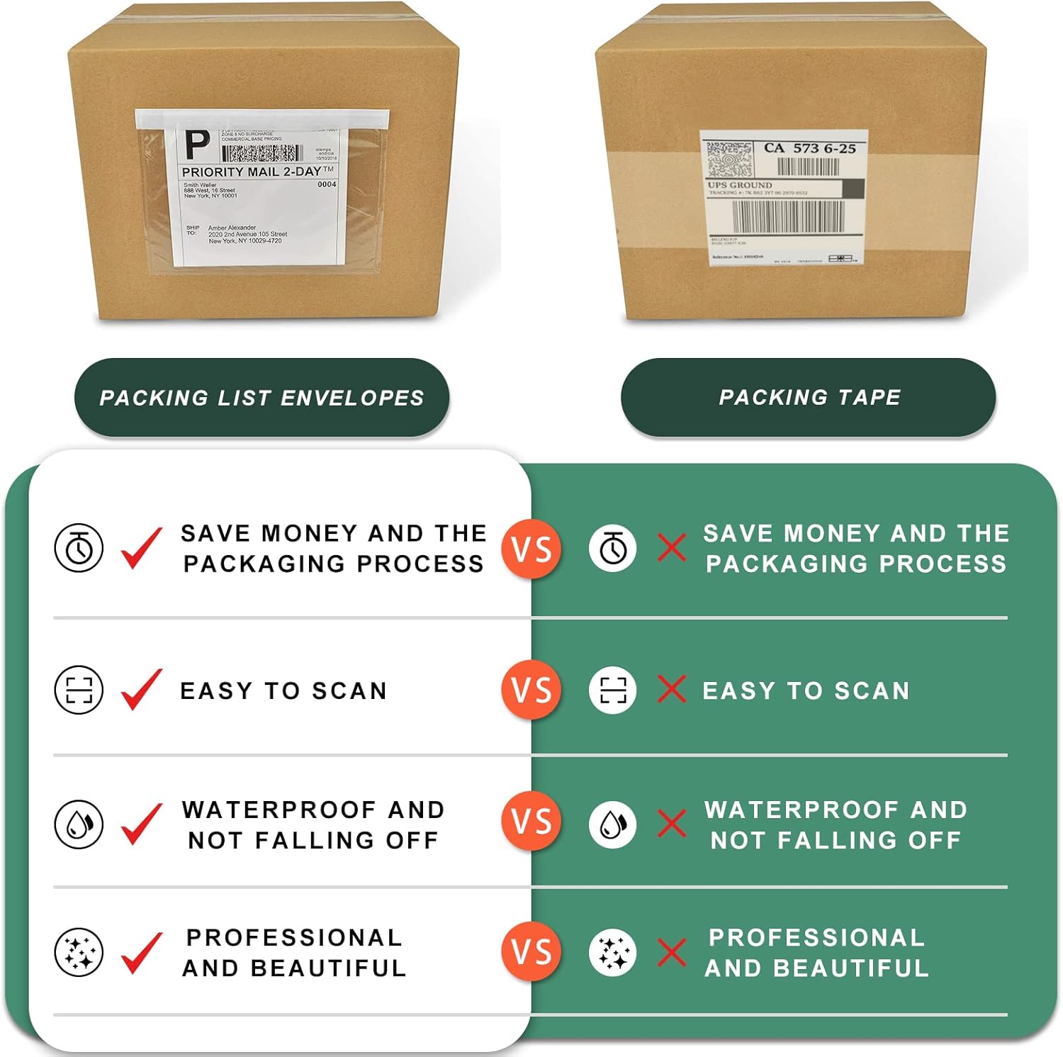 - 【SIMPLE TO USE】So convenient and easy to use, the long side opening makes adding paperwork much faster. Just peel, stick, slide the shipping label in and go!