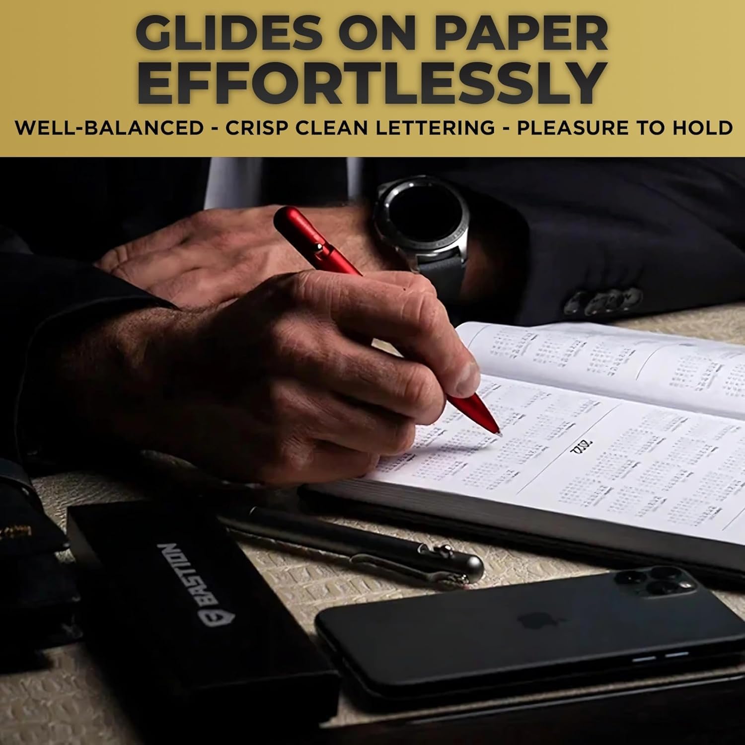 BASTION® Luxury Slim Bolt Action Pen, Lightweight Aluminum EDC Pen with Fine Tip, Professional Ballpoint Pen for School and Work - Red