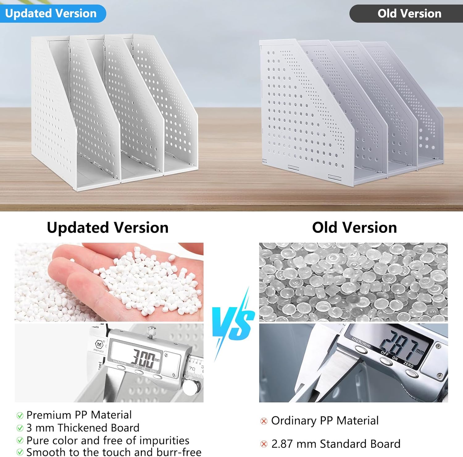 - FOLDABLE FUNCTION: SAYEEC 2Pcs 3 compartment vertical file holder is free to adjust, you only need to expand both sides then you can store more stuffs. If you don’t have many documents, you can fold the blank compartment, save your desk space.