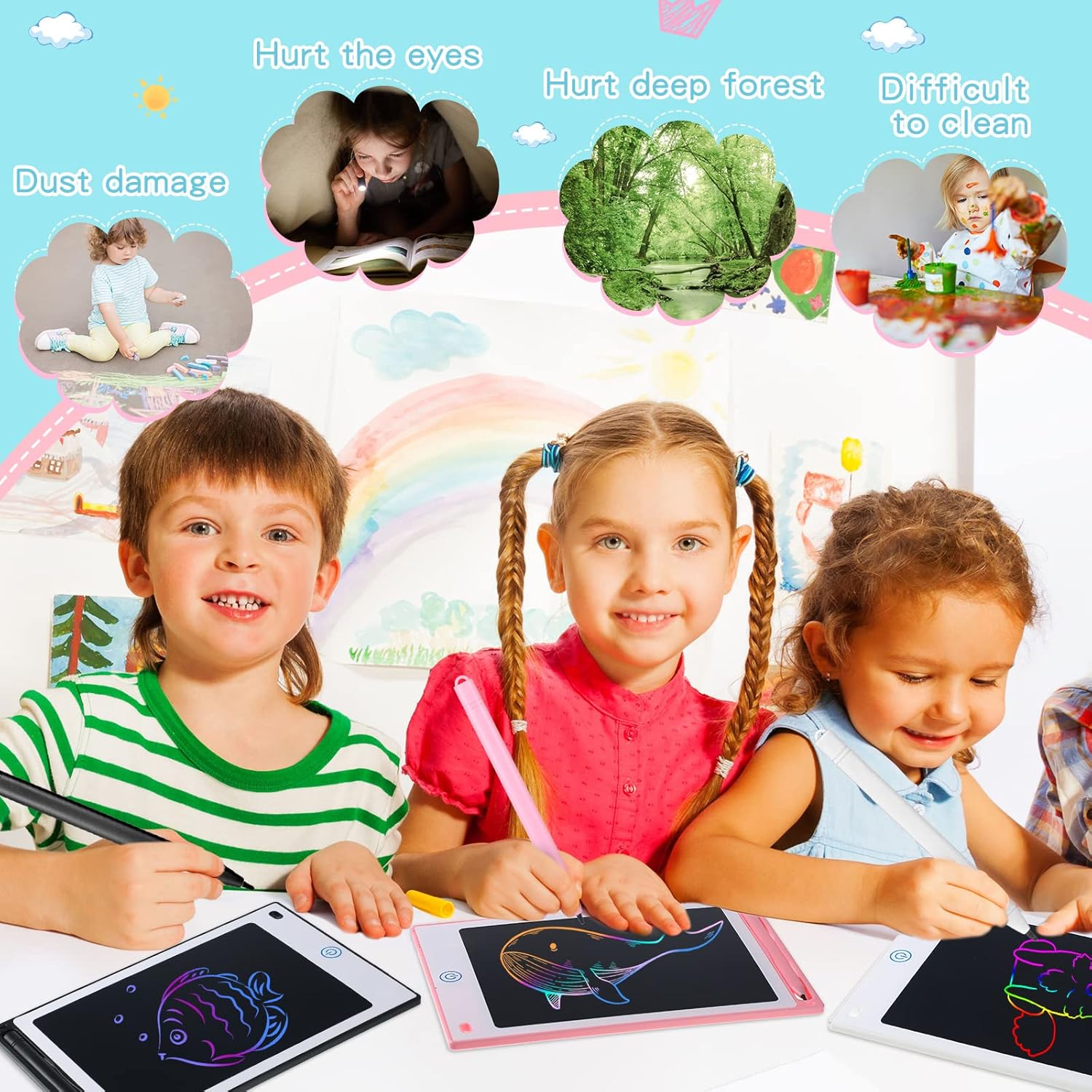 Zonon 4 Pcs LCD Writing Tablet 8.5 Inch Doodle Board Tablet Drawing Gifts LCD Writing Board Electronic Erasable Reusable Colorful Screen Pad(Light Blue, Light Red, White, Black)