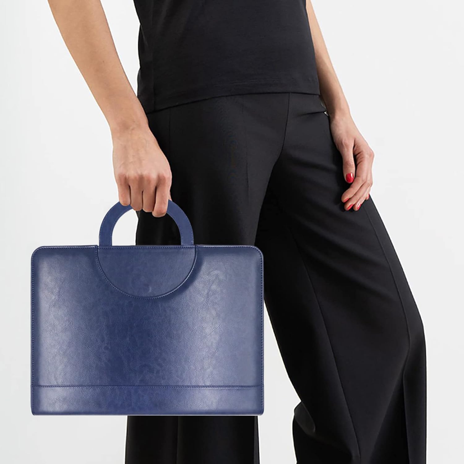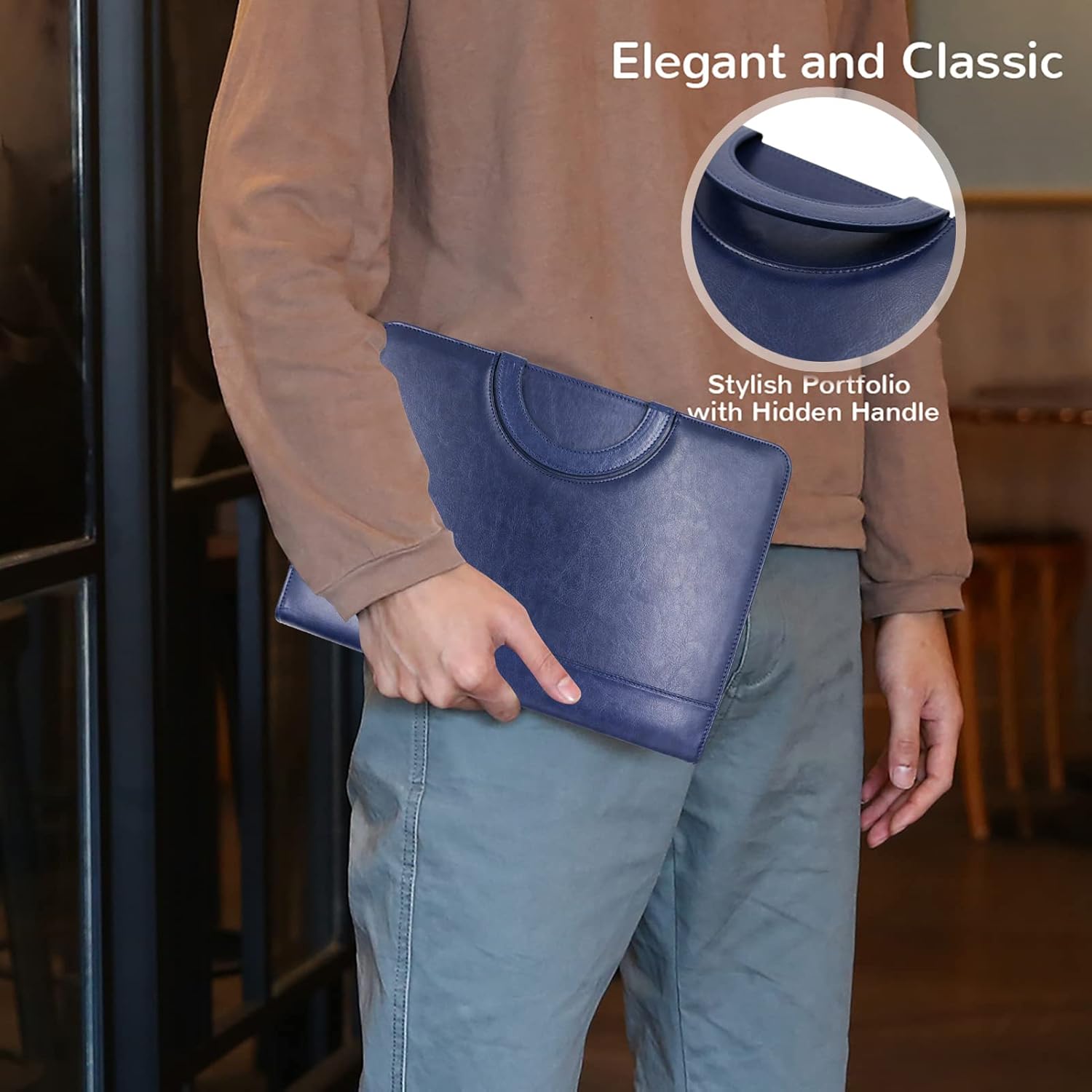 Darolin Zippered Leather Padfolio Portfolio with [Hidden Handle] and [Clipboard], Business Conference Organizer Notepad Folder, Portfolio Bag for Women/Men (Blue)