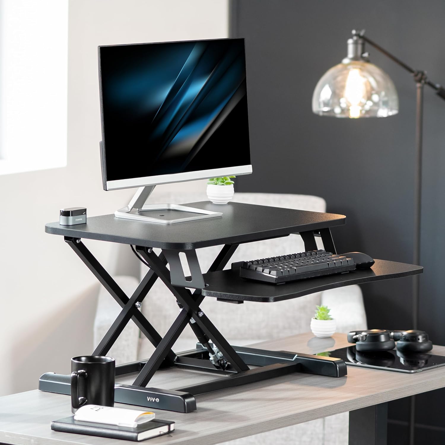 - Create Instant Active Standing: VIVO’s desk riser provides on-demand standing throughout the day for the freedom to get out of your chair and relieve muscle tension, reduce stress, and increase productivity --Patented--
