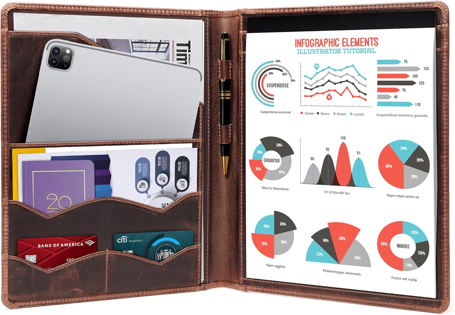 - LARGE INTERIOR POCKET – A large interior pocket in this resume portfolio organizer can be used to store notebooks & other documents of similar sizes. This portfolio folder can also be used as a tablet pocket for most tablets (up to 11” size) like iPad, Google Nexus, Samsung Galaxy & more