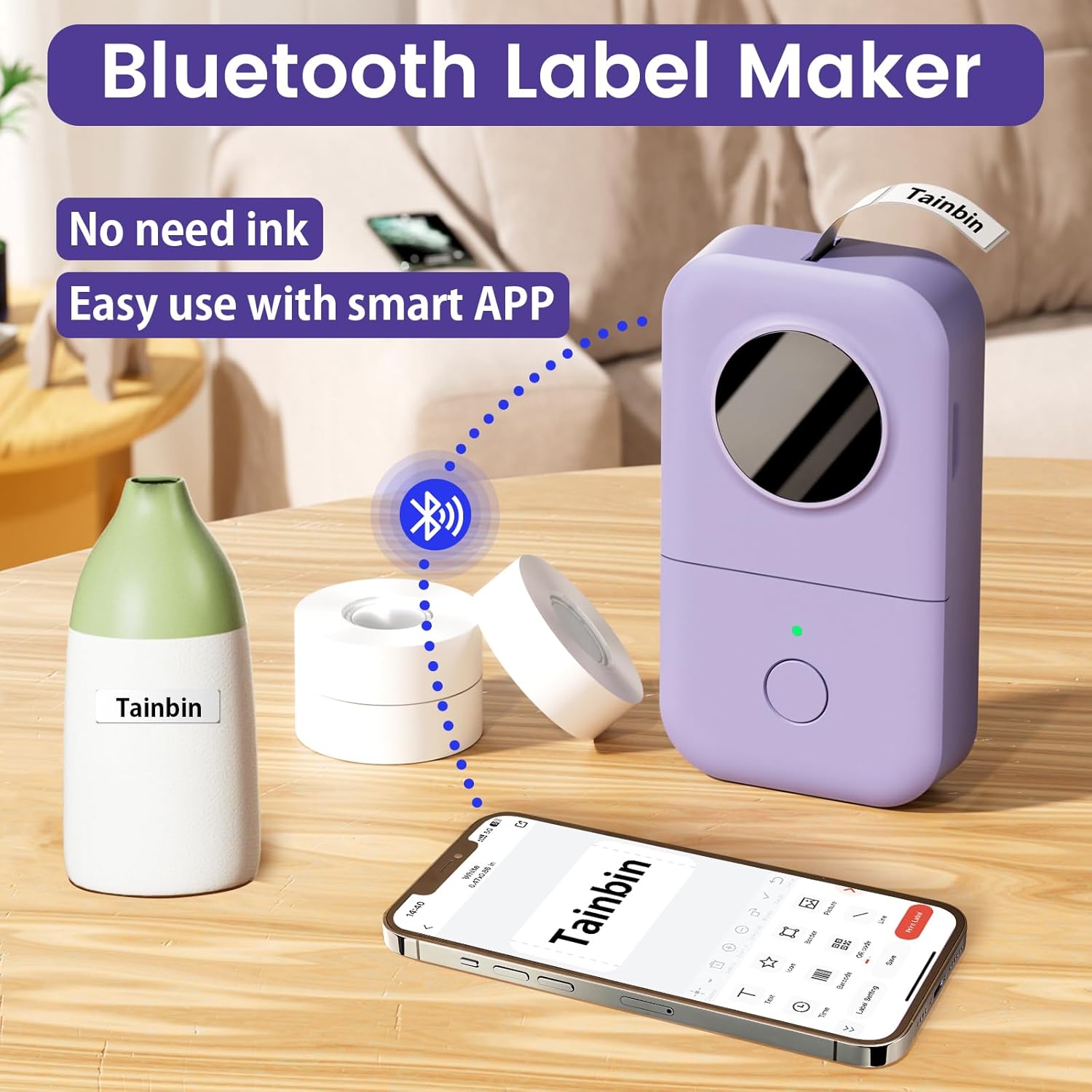 - Wireless & Portable - The mini-size, Bluetooth-connected Phomemo label printer offers convenient and fast printing from your mobile device. It has a built-in, durable rechargeable battery for extended use. The compact design allows it to easily slide into your pocket for portability