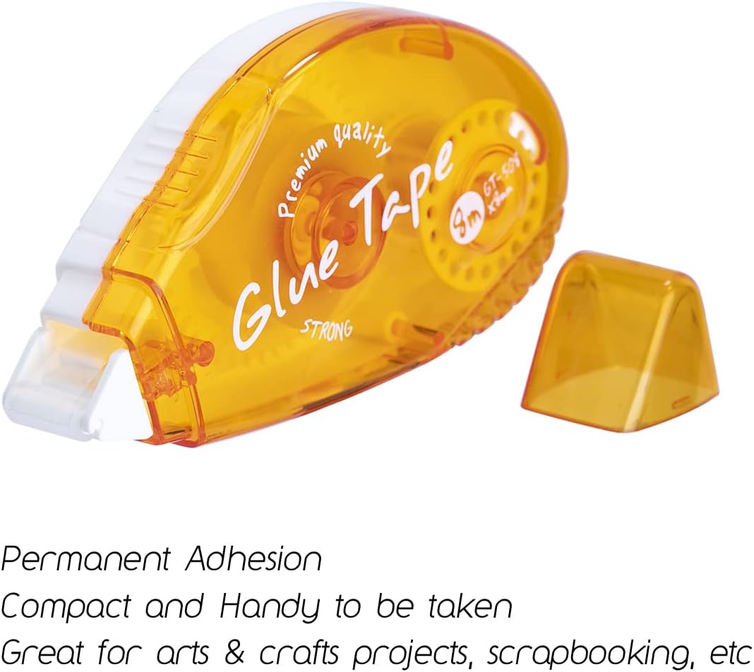 - Valued Pack of 12: You are getting total of 12 packs double-sided adhesive permanent tape roller in different vibrant colors. Each roll holds 0.3-inch by 315 inch double sided tape, and 315 feet length in total.