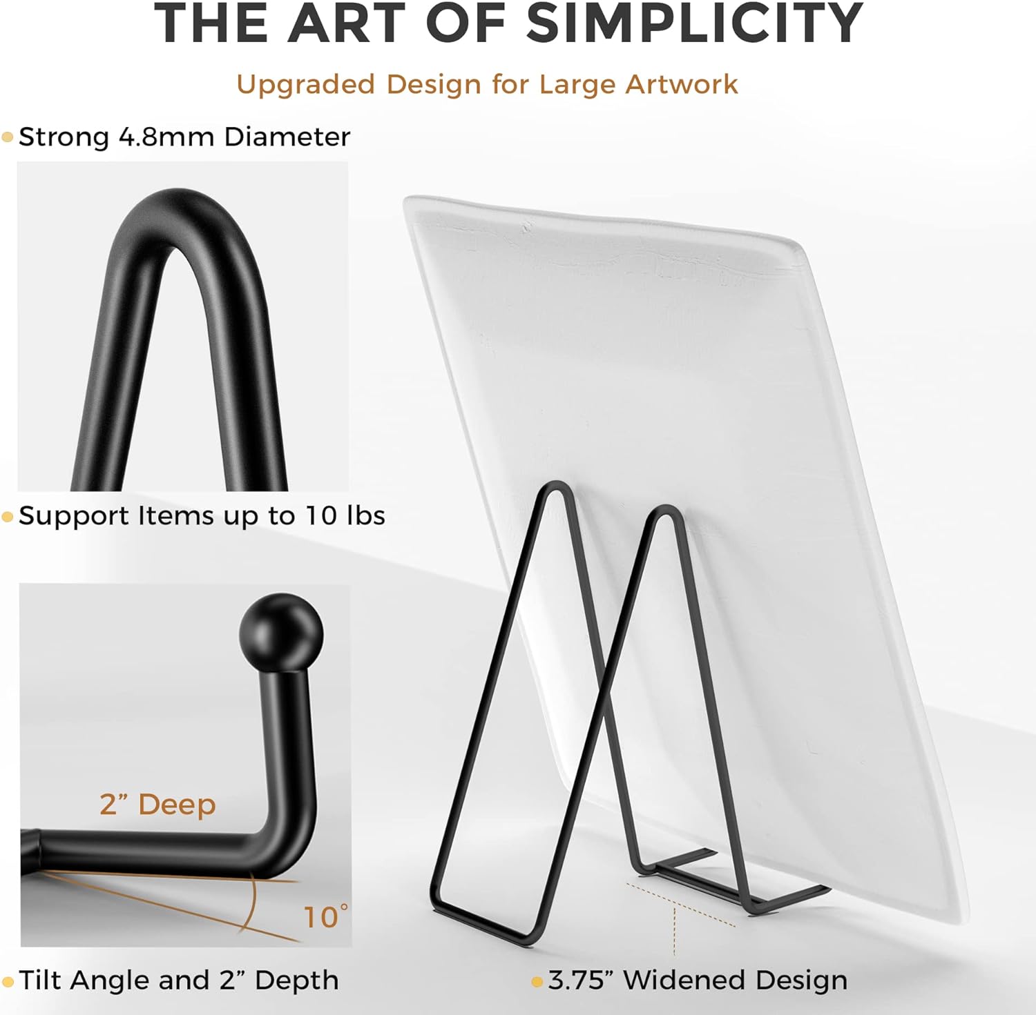 - SIMPLE BUT STURDY DESIGN: - This plate display stands has a matte black powder-coated finish and wrought iron construction, strong enough to hold decorative plates, painted tiles, commemorative plaques, photo frames, platters, pictures, book, canvas, etc.