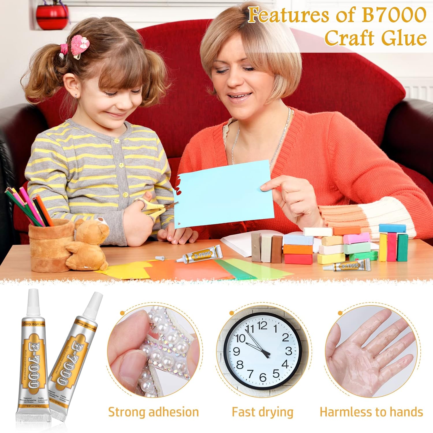 B7000 Clear Glue for Jewelry Making, Upgrade B-7000 Adhesive Crafts Glue Multipurpose Super Glue for Scrapbooking Supplies, School DIY Craft Glass, Fabric, Wood, Rhinestones Gems Clothes (2X 15ML)