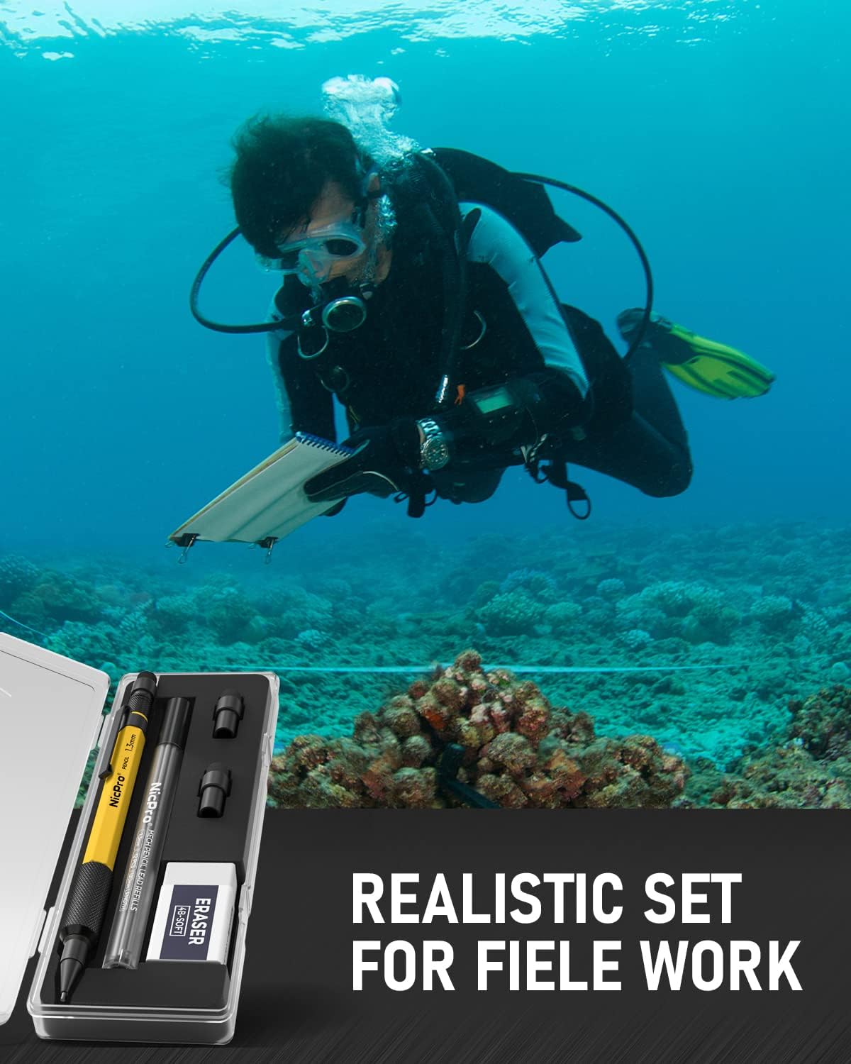 - 1.Mechanical Pencil Set: Come with a 1.3mm mechanical pencil,1pcs 4B eraser, 2pcs eraser refill, 1 tube of lead refills (12pcs/tube),each lead is 120mm long, the full length of the pencil’s barrel.There is also a plastic pencil case included,a realistic set for field work.