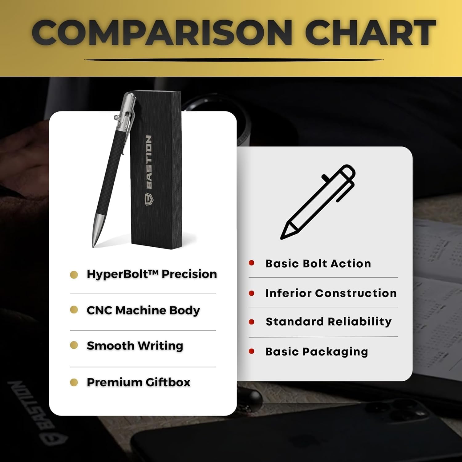- Available Bolt-Action Pens: The exclusive, reliable, and timeless design of the BASTION Bolt-Action Pens shapes the future with functionality and simple design.
