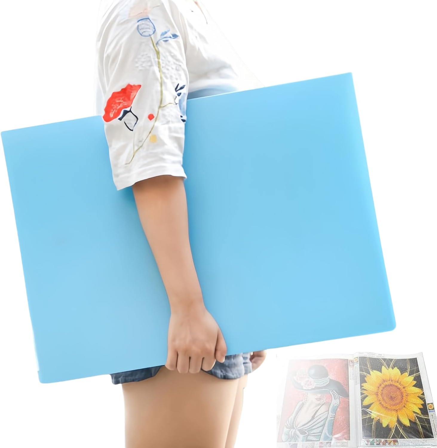 MOTEERLLU A2 Storage Book Suitable for 22x15 inches Diamond Paintings,Diamond Art Kit Storage Container with 30 Pocket Sleeves,Portfolio Folder for Artwork (Blue)
