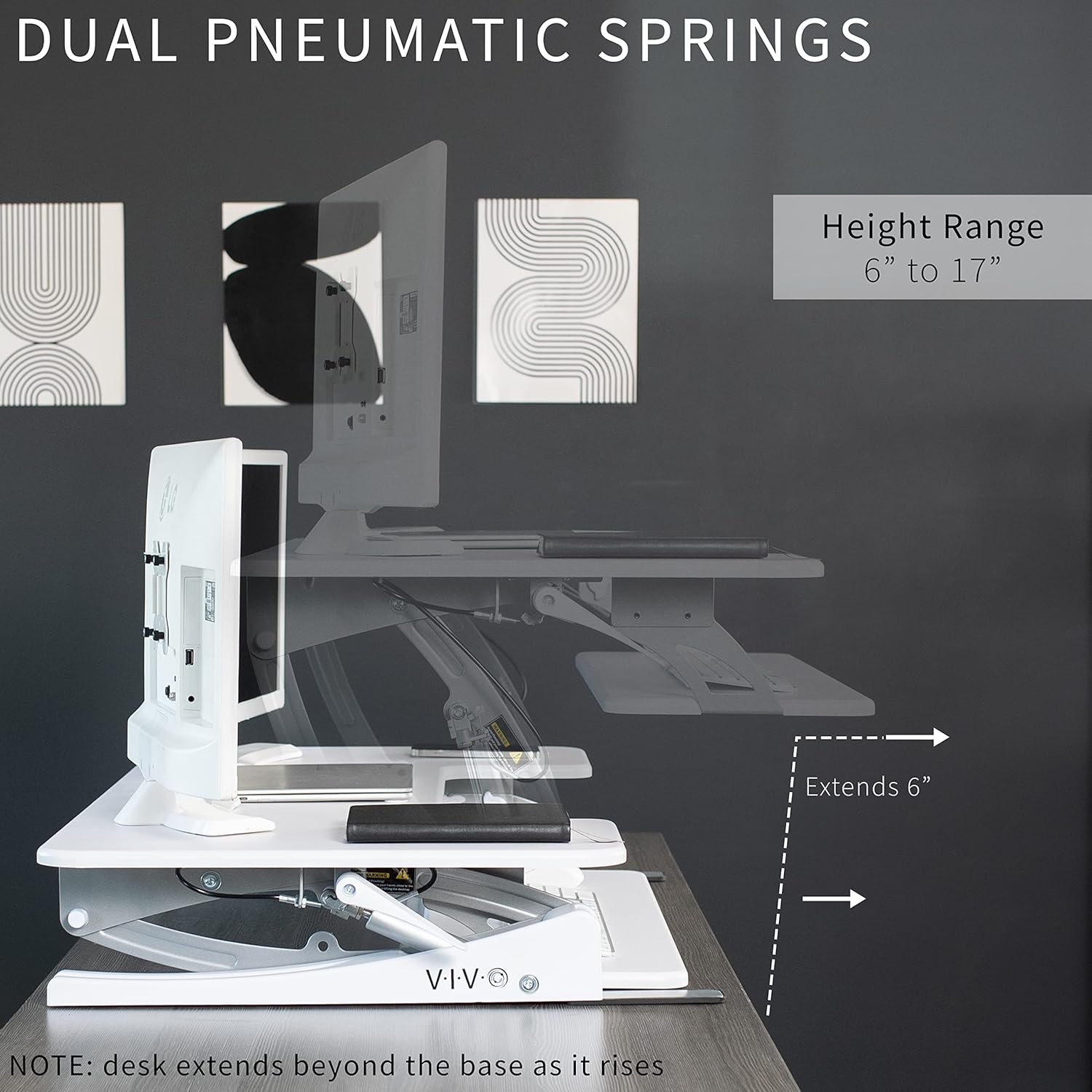 - Create Instant Active Standing: VIVO’s desk riser provides on-demand standing throughout the day for the freedom to get out of your chair and relieve muscle tension, reduce stress, and increase productivity --Patented--