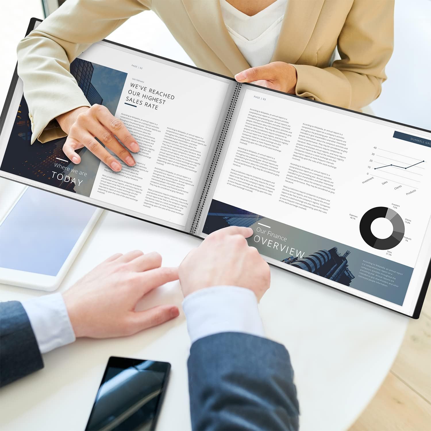 - Size: Binder cover measures 13-1/8 (W) x 9-5/8” (H). Each pocket is 12-3/8 (W) x 9-1/2 (H) to fits horizontal orientation sheets of paper. Closed book is .5” at the spine. Lies flat when open.