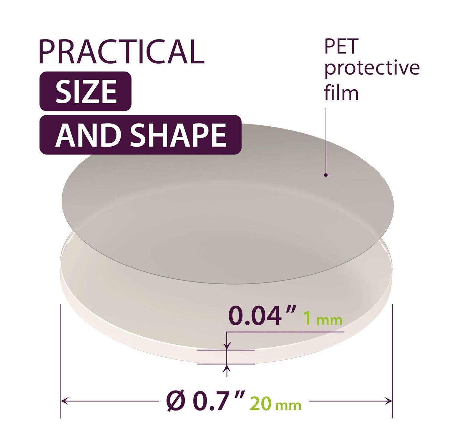 - 🦎 PREMIUM QUALITY GreenFix double sided sticky dots! One adhesive dots set includes 150PCs clear round stickers 0.7” (20mm) diameter and 0.04” (1mm) thick each ​​sticky tack.