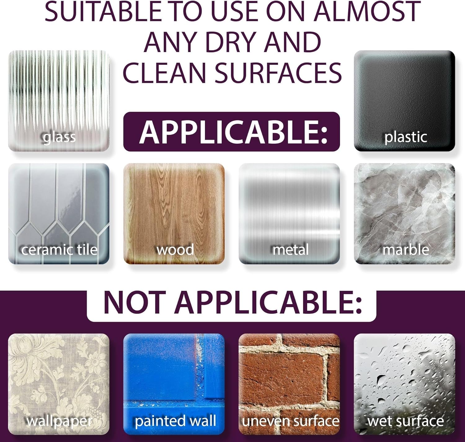 - 🦎 SURFACES: beware of tacky putty extra stickiness! We DO NOT advise attaching sticky tape dots to painted walls, drywall or wallpaper. Best matches are smooth solid surfaces such as wood, glass, tiles, plastic, metal, stone, etc.
