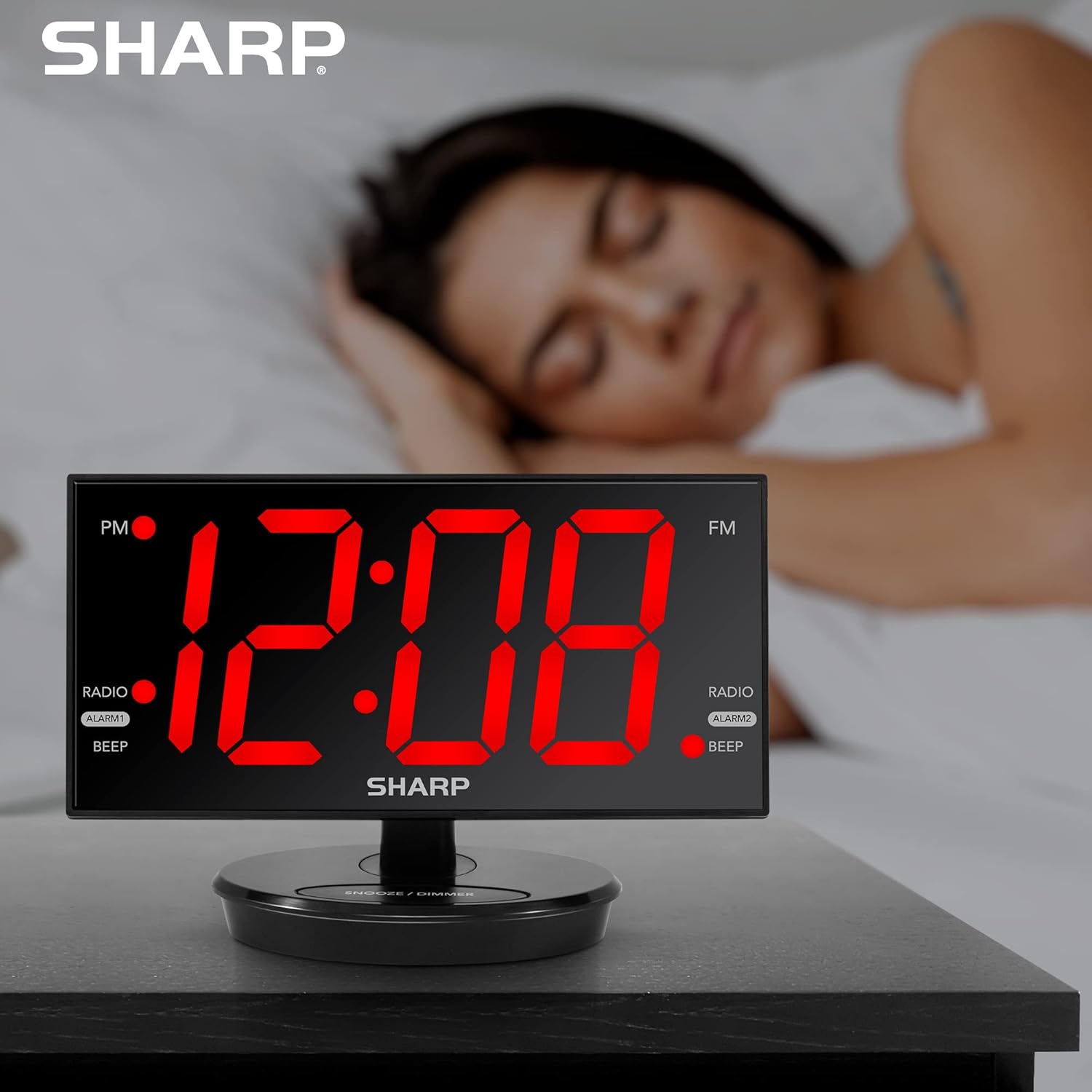 - TILT AND SWIVEL DISPLAY – The SHARP designed large 8.9” display can tilt and swivel, giving you the perfect angle to see the clock from any location in the room. Don’t be stuck with a small clock with a limited single viewing angle!