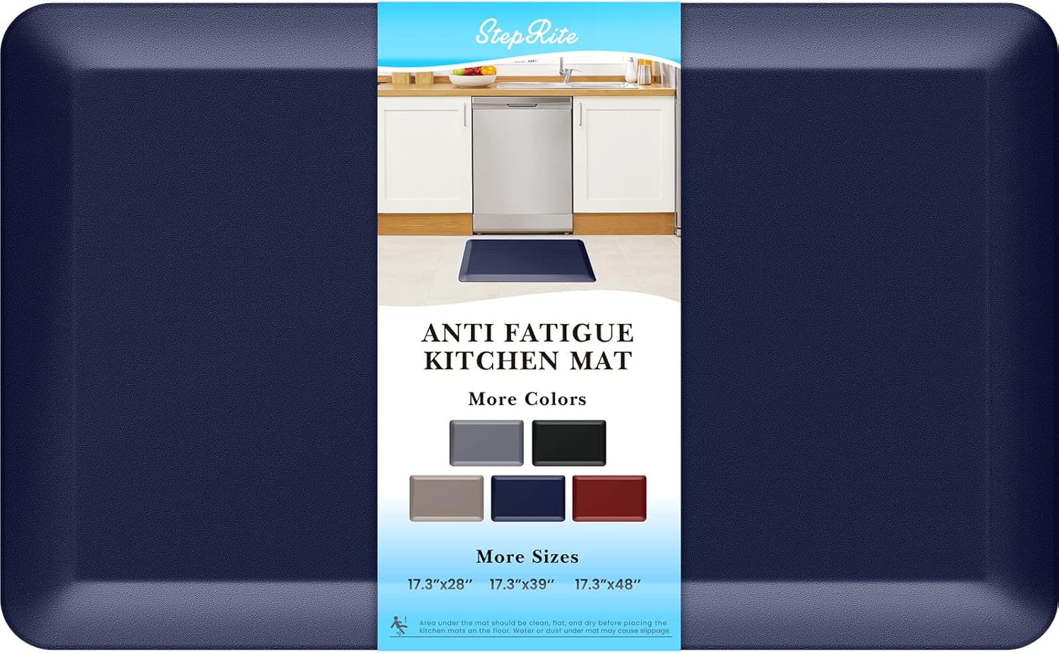 StepRite 4/5 Inch Thick Kitchen Mat Anti Fatigue Mat Kitchen Rugs Kitchen Decor Non-Slip, Stain Resistant, Waterproof Kitchen Mats Desk Mat for Kitchen, Office, Workshop, Blue, 17'' x 28''