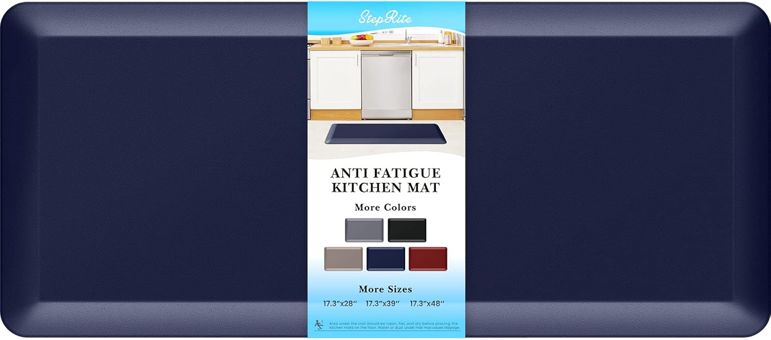 StepRite 4/5 Inch Thick Kitchen Mat Anti Fatigue Mat Kitchen Rugs Kitchen Decor Non-Slip, Stain Resistant, Waterproof Kitchen Mats Desk Mat for Kitchen, Office, Workshop, Blue, 17'' x 39''
