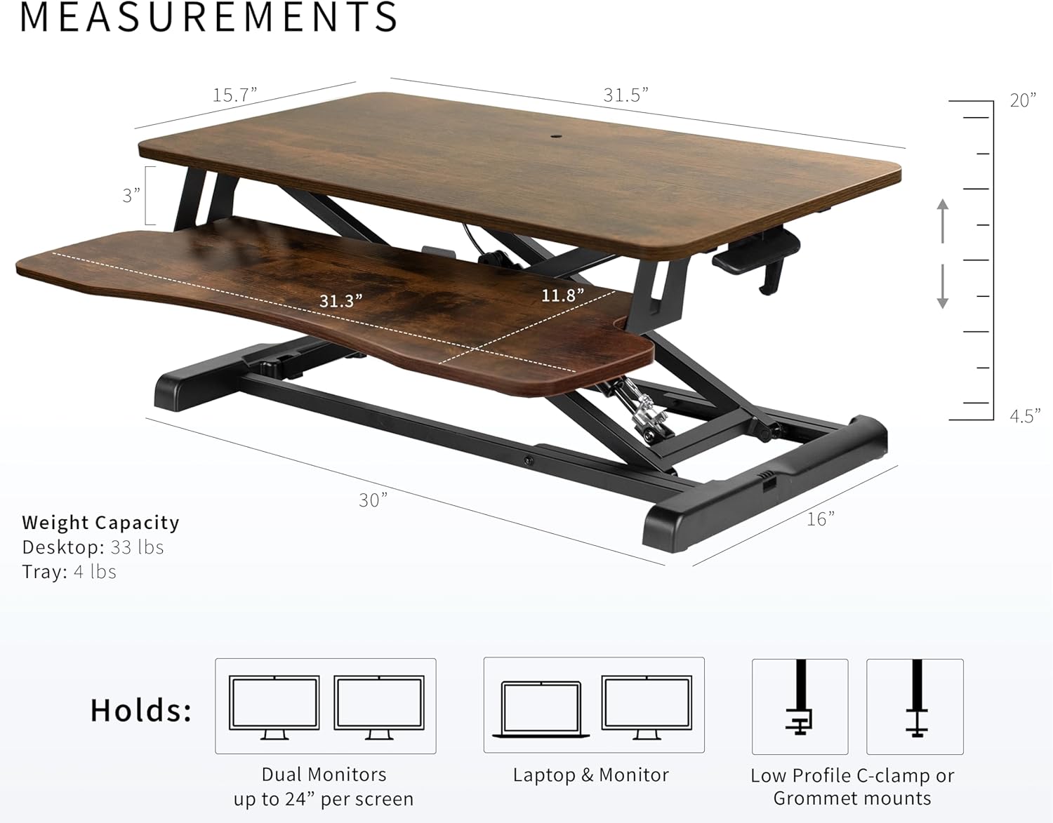 VIVO 32 inch Desk Converter, K Series, Height Adjustable Sit to Stand Riser, Dual Monitor and Laptop Workstation with Wide Keyboard Tray, Vintage Brown Top, Black Frame, DESK-V000KN
