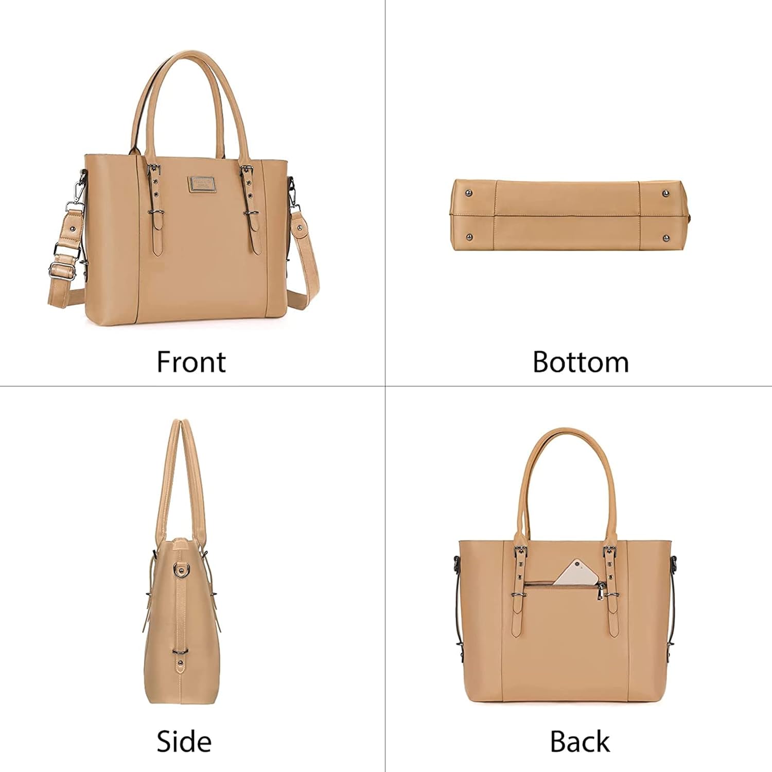 MOSISO PU Leather Laptop Tote Bag for Women, Waterproof Large Capacity Business Work Briefcase Shoulder Laptop Bag