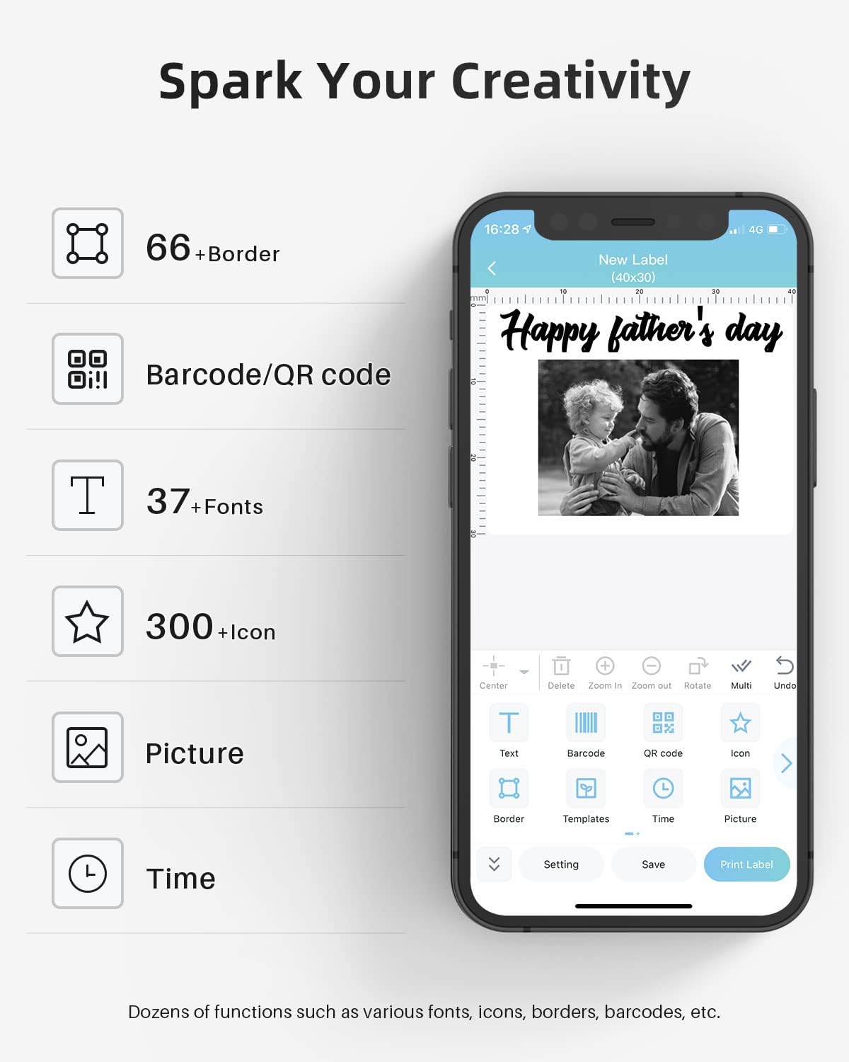 - All-singing, All-dancing APP - Phomemo's R&D team create the Print Master APP for you, with a variety of built-in functions. One-click use: text, pictures, barcodes, QR codes, OCR, Form, hundreds of icons, and many pre-made templates for commercial and home use. Improve your efficiency