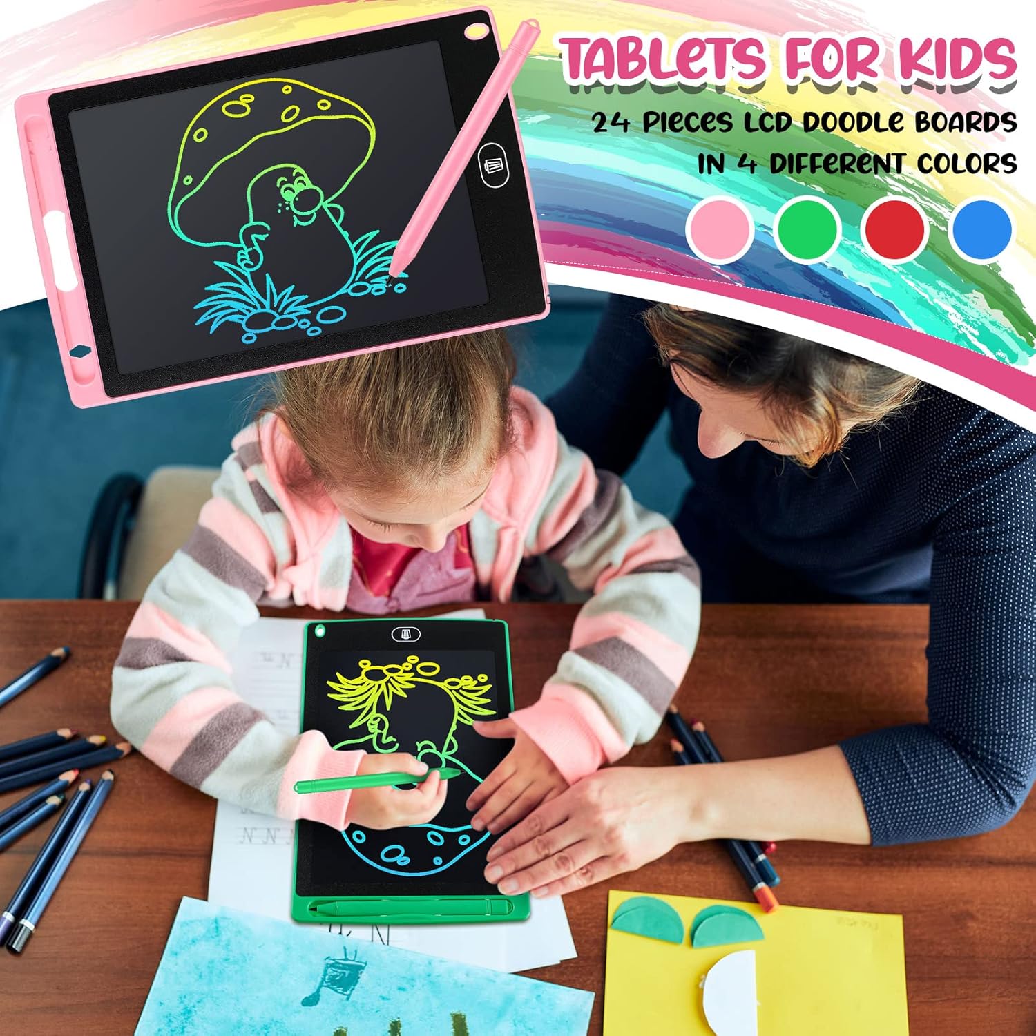 - Tablets for Kids: you will receive 24 pieces LCD doodle boards in 4 different colors, 6 pieces in each color, enough for boys and girls to use and replace; They can be applied as birthday gifts, class rewards and game prizes