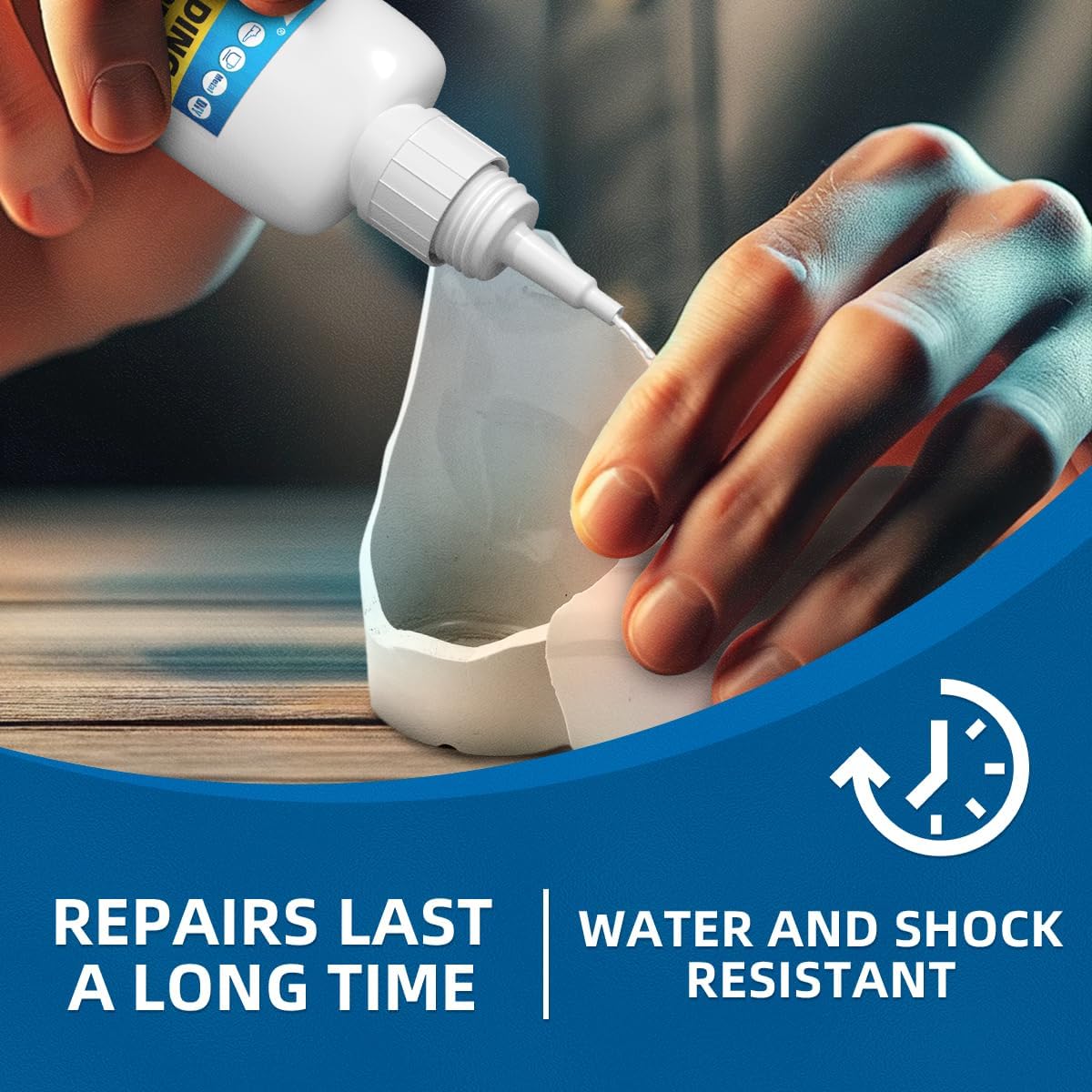 - REPAIRS LAST A LONG TIME: Water and shock resistant. Repair is like magic. Keep your items pristine by gluing their loose ends back to their normal shape. Unlike cement glue, oil-based glue does not harden or become brittle over time.