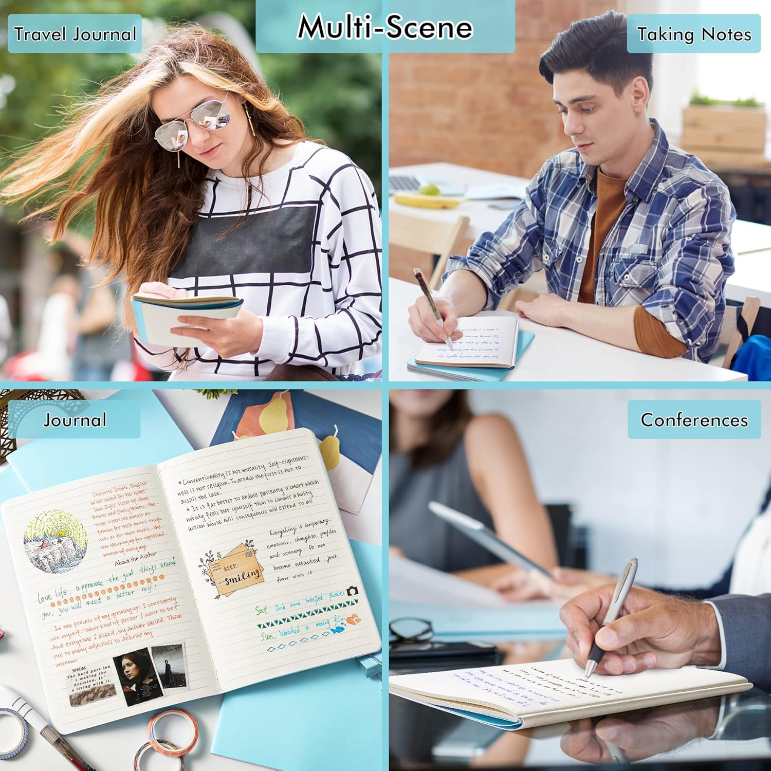 - Use it as a travel journal. Travelers can use it as travel journal to write down precious moments and thoughts. Each measures 8.2” x 5.5”, which is convenient to carry in hand or just put it in the bag.