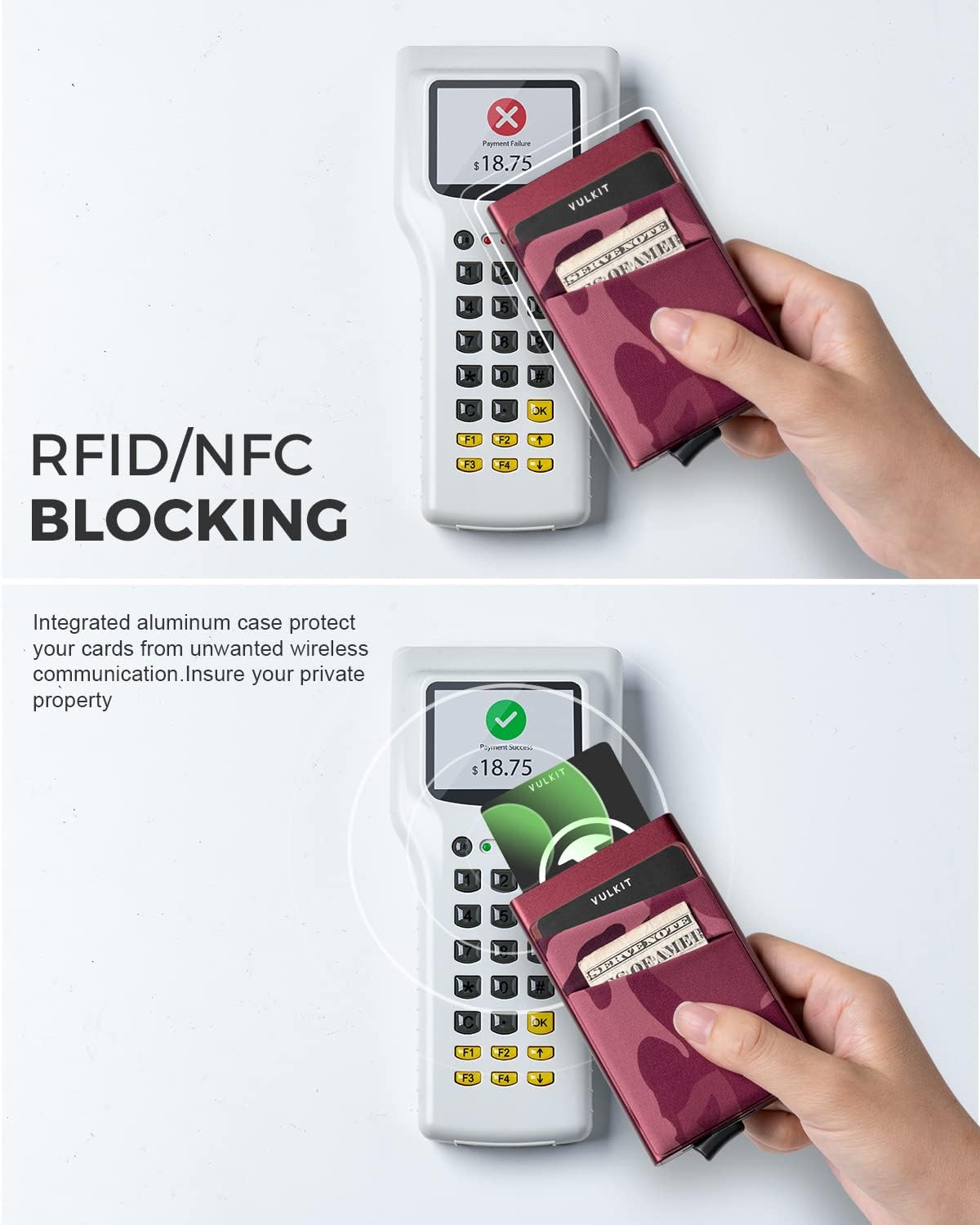 VULKIT Card Holder with Money Pocket Pop Up Wallet RFID Blocking Slim Metal Bank Card Case Holds 5 Cards and Notes