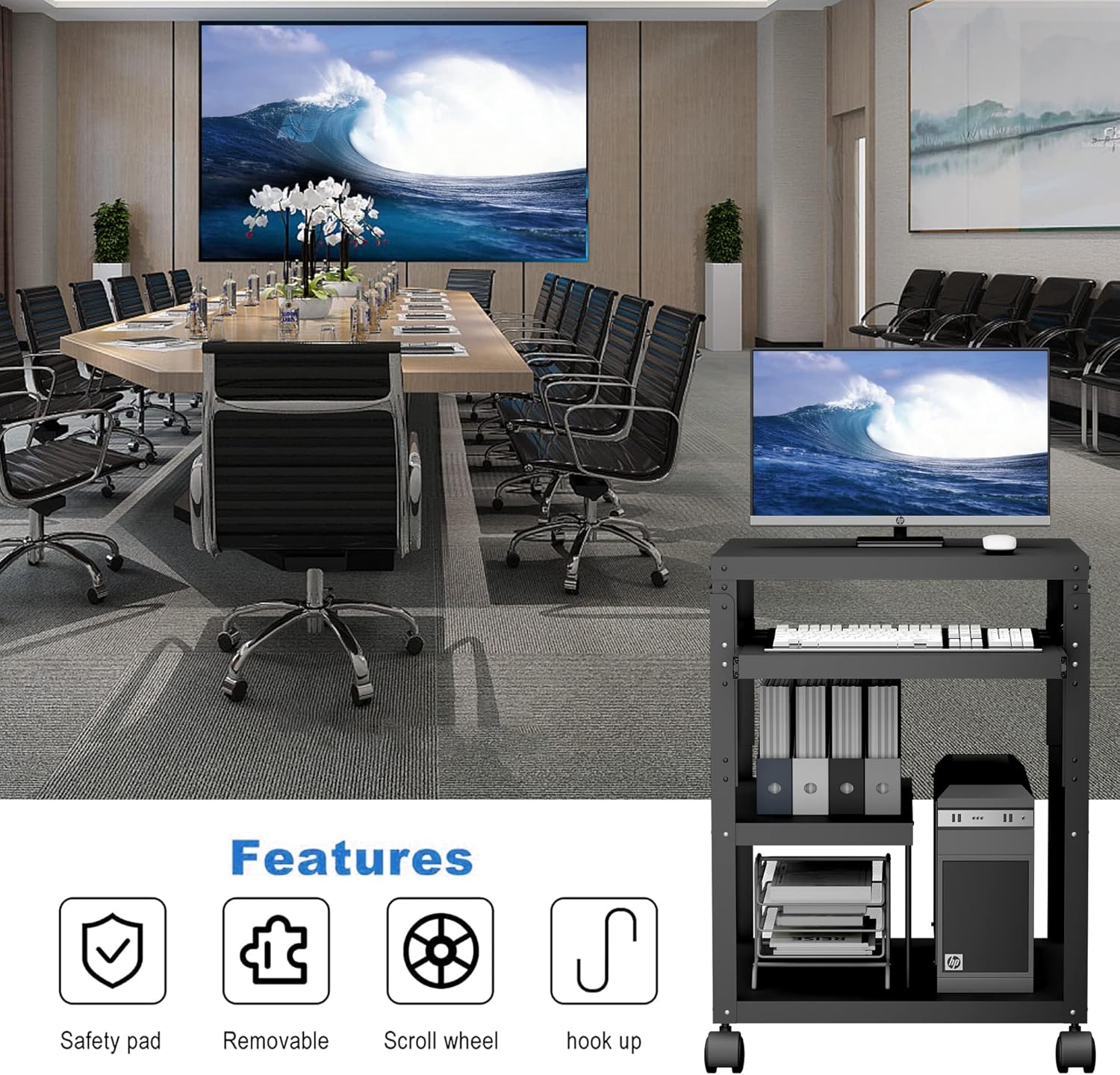tonchean AV Presentation Cart with Keyboard Tray, Heavy Duty Mobile Workstation Presentation Cart for Video Projector, Laptop Computer, Media Cart for School Classroom Office(Black)