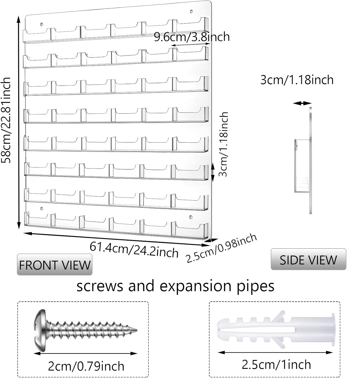 Hillban Acrylic Business Card Holder Wall Mount Clear Sticker Display Rack Multiple Card Holders Clear Acrylic Organizing Sticker Display Stand Pre Drilled(48 Pockets)