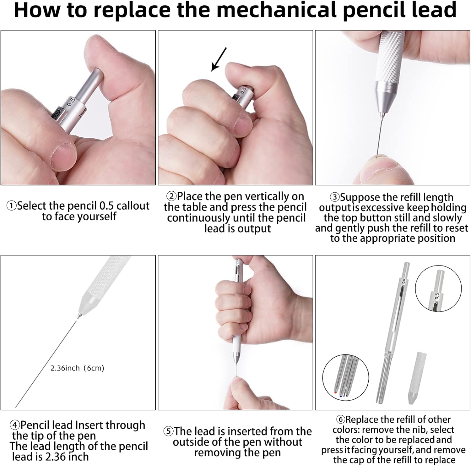 - 4 in 1 Multi-Color Pen: The 3 color ballpoint pen includes: black ballpoint pen, red ballpoint pen, blue ballpoint pen and 0.5mm mechanical pencil. Fashion Business Body Length 5.9inch (15cm), Width 0.39inch (1cm), Weight 0.78oz (22g).Note: If you receive the product will not use the conversion color or have any questions about the product, please contact us immediately and we will teach and solve the problem one-on-one.