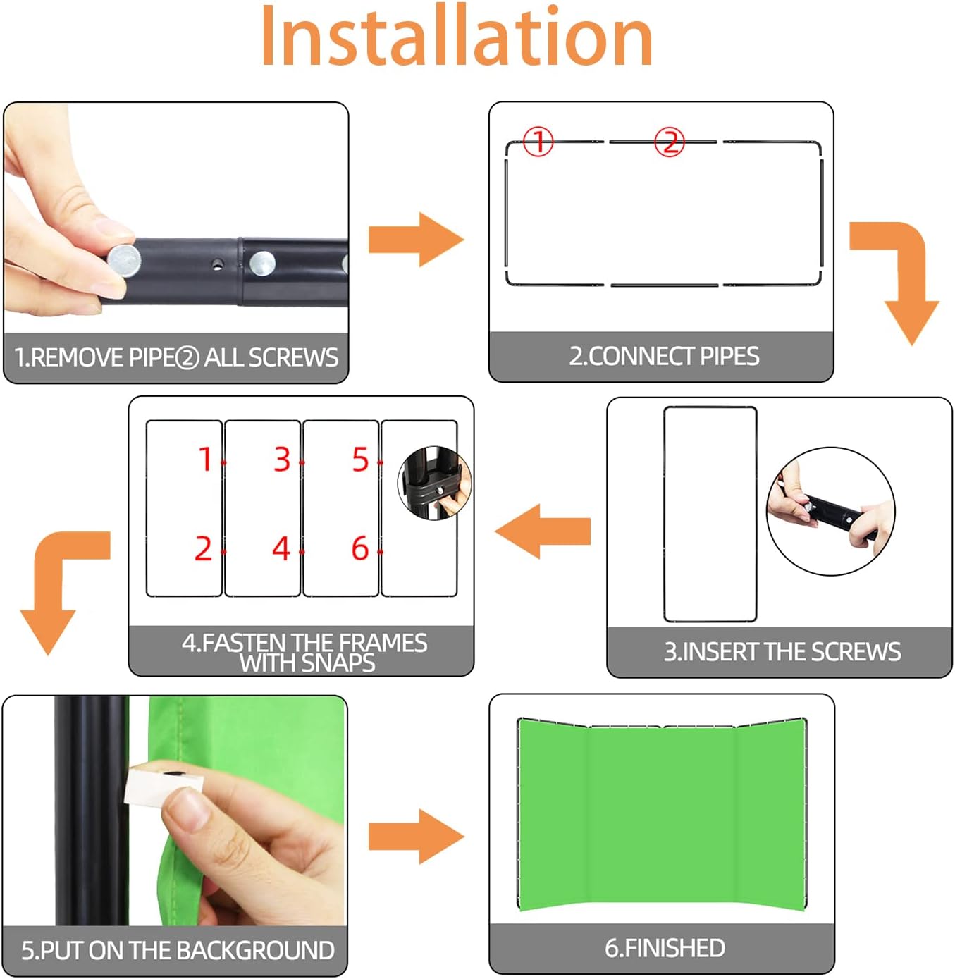 - 【Package Contents】1 PC green backdrop (13.1*7.9 Ft); 4 Packs aluminum frame pipes ;1 Pack Connection fitting; 1 PC oxford storage bag
