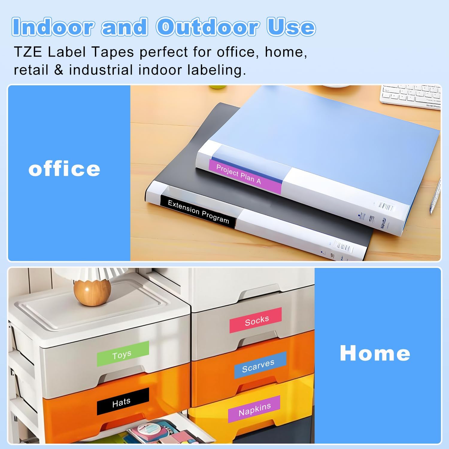 - TZe TZ Tape Laminated Colored labels 12mm 0.47 Inch: Strong Adhesion, Water Resistant, Chemical Resistant, Abrasion Resistant, Temperature Resistant, Fade Resistant. These Label Maker Tapes are Suitable for Indoor and Outdoor Use