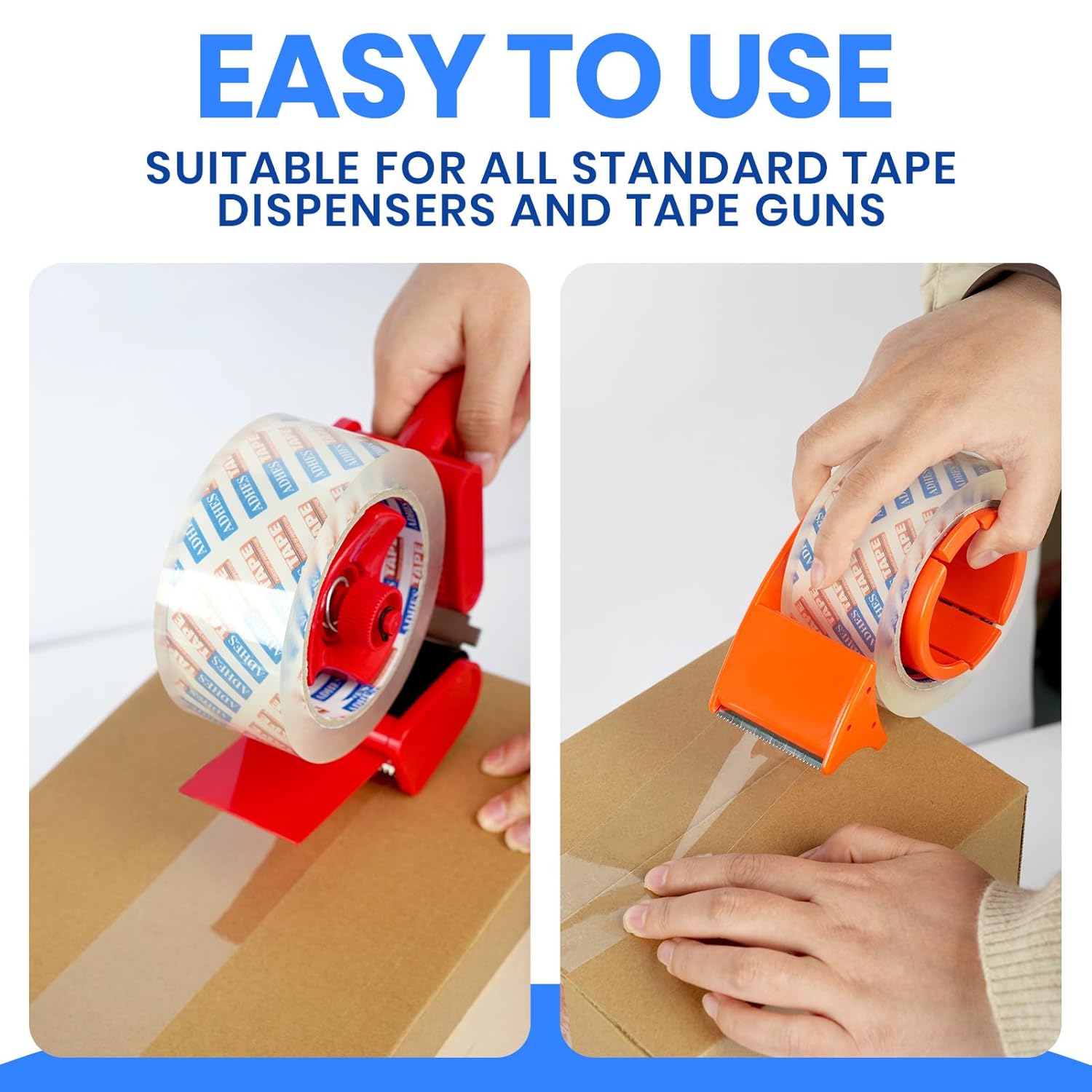 - 2)[CRYSTAL CLEAR & NO SLIVERING AND SPLITTING PACKING TAPE] Forget about that nasty yellowing that low quality tapes have. When you use ADHES packing clear tape with anti-silvering, anti-splitting you can experience the beauty of perfect, efficient and easy taping that promises maximum sealing and protection for your goods