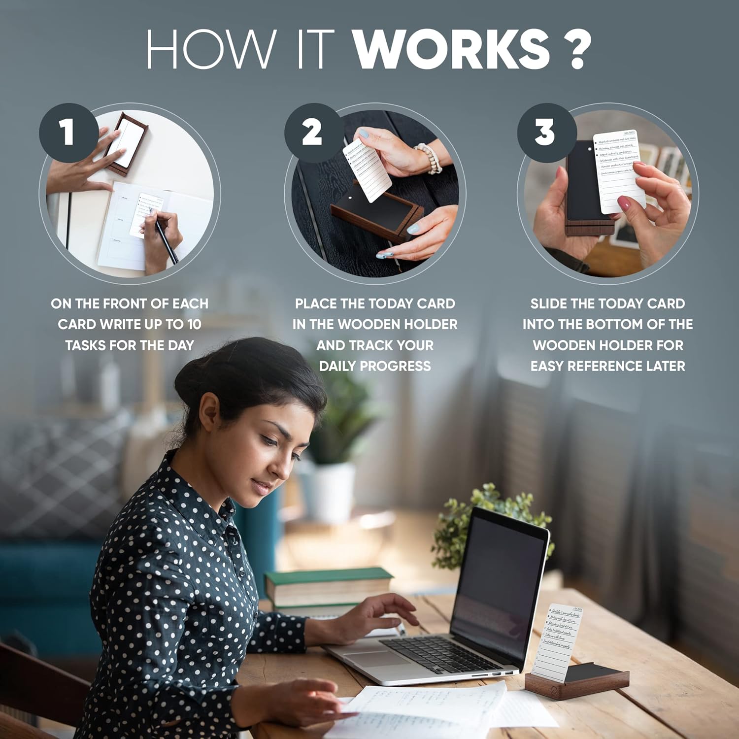 - πππππ, ππππππ ππ-ππ ππππππ: All cards measure 3βx5β and are made of high-quality, 100GSM paper. Their size makes the cards easy to carry. And yet they wonβt rip in your pocket, handbag or backpack. These daily to-doβs will withstand months of folding, holding and bending.