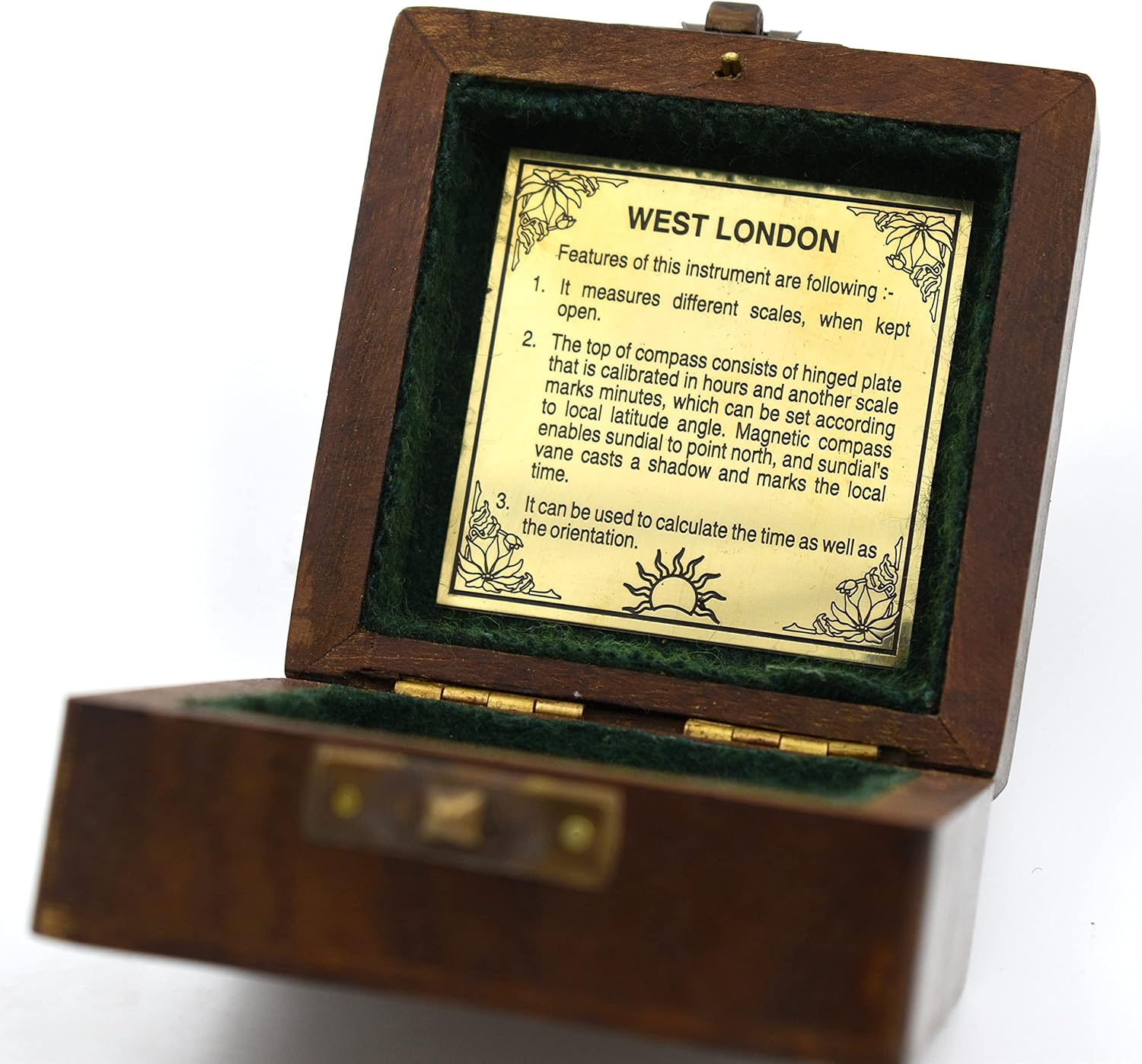 - Beautifully crafted solid brass pocket sundial compass with high quality polished finish on Brass & Natural Finish. Portable design, convenient to carry. Valued as decorative objects, literary metaphors, and objects of mathematical study.
