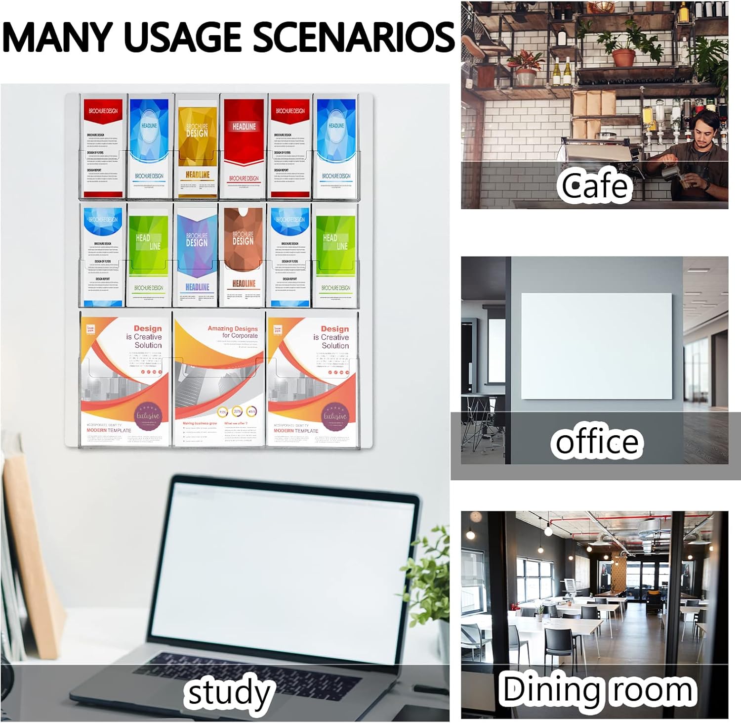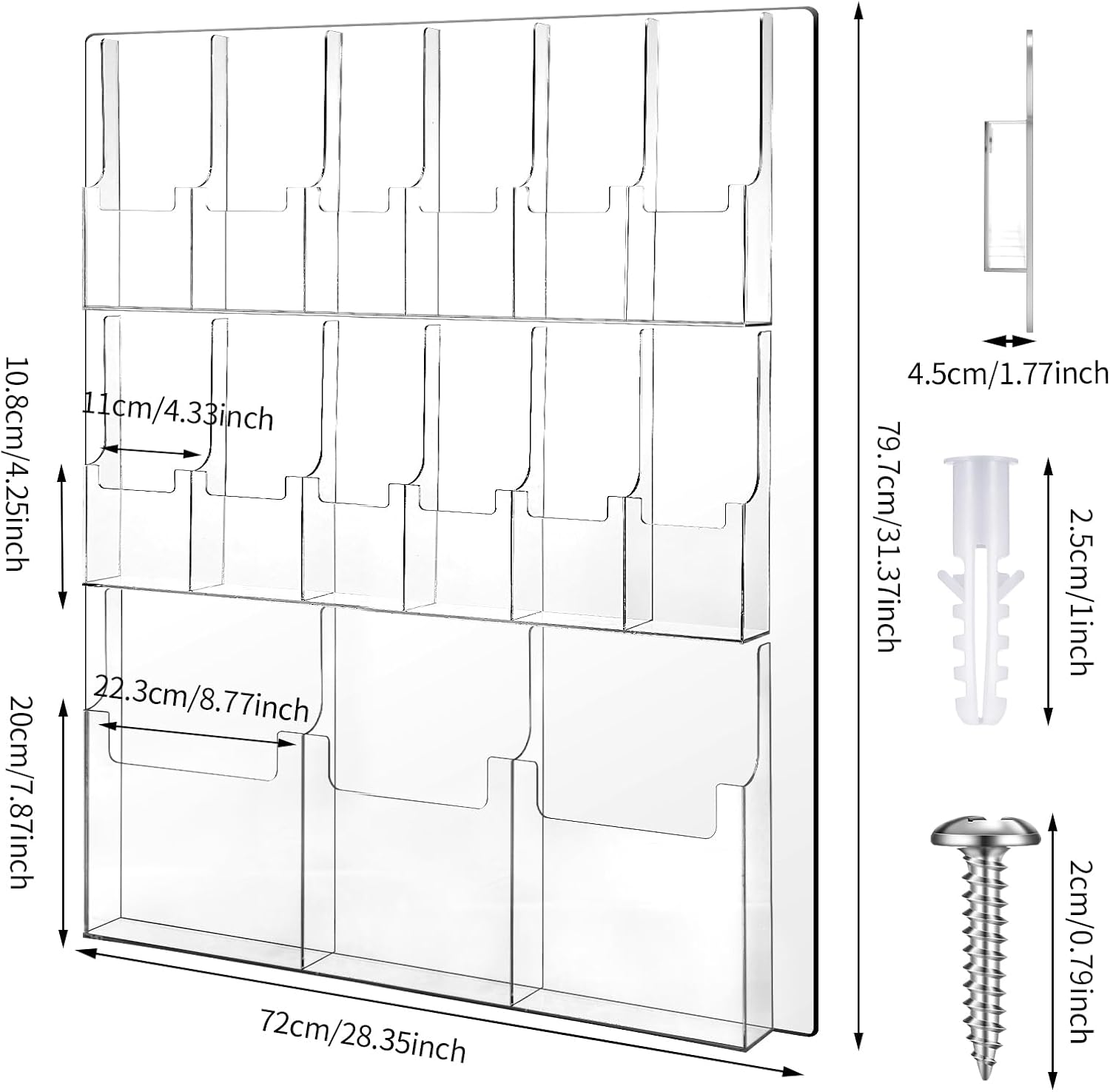 Weysat Acrylic Brochure Holder Wall Mount, Clear Plastic Pamphlet Holder Magazine Display Trifold Flyer Rack Hanging Literature Storage Organizer(3 Magazine Pockets, 12 Pamphlet Pockets)