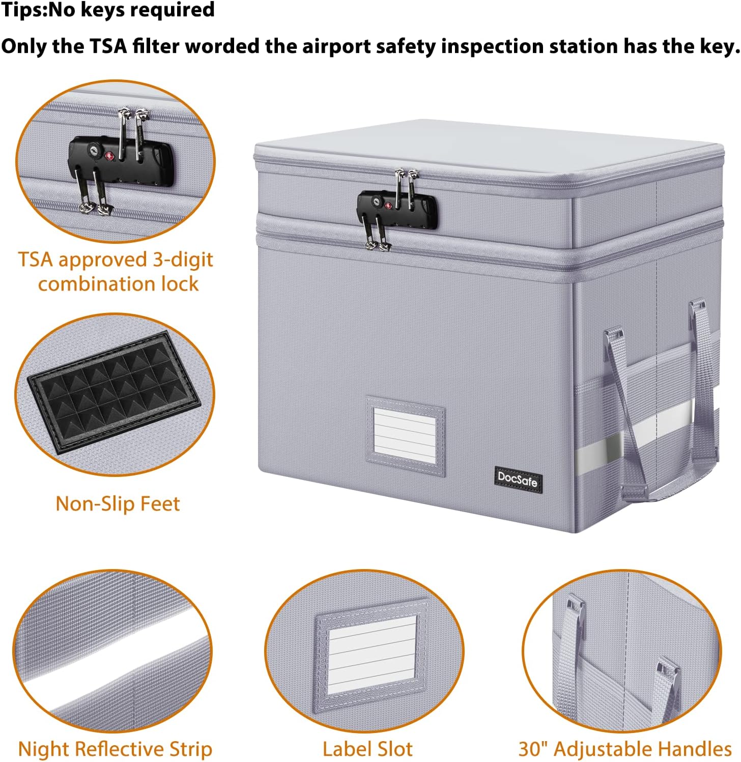 - Fireproof and Water-resistant: The multi-Layer rolling fireproof file box is made of 3 layered non-itchy silicone coated fiberglass which stands up the temperature up to 2200℉.It has been passed by SGS TEST(UL94 VTM-0 Certified).The file lock box is fireproof and waterproof, which can effectively protect your important documents in a fire, flood, and wet weather. They will further keep your files intact. Nothing is completely foolproof, but added protection is always a good idea.
