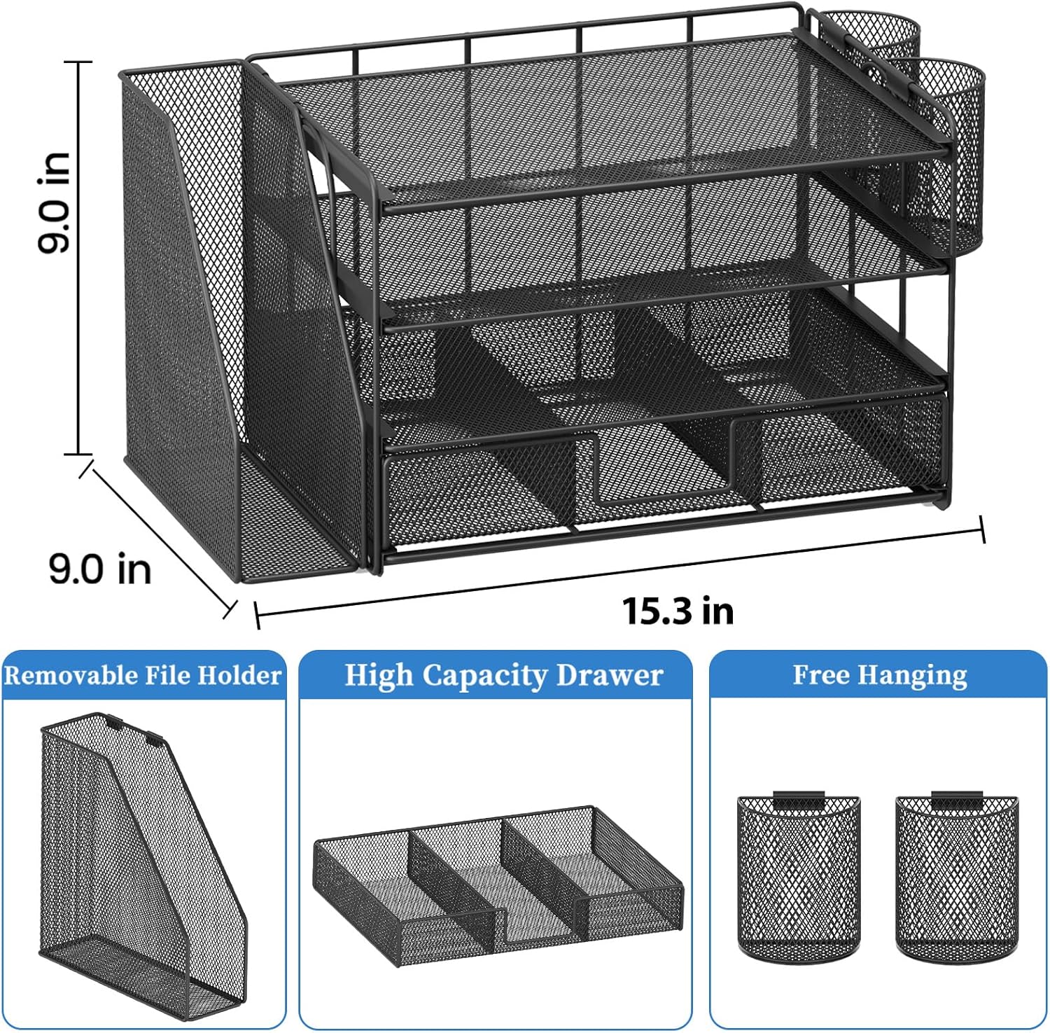 - đăPremium QualityăCrafted from high-quality industrial-strength steel wire mesh and reinforced with a solid steel frame, our desk file organizer is built to last. You can trust that it will withstand the test of time and keep your workspace organized for years to come