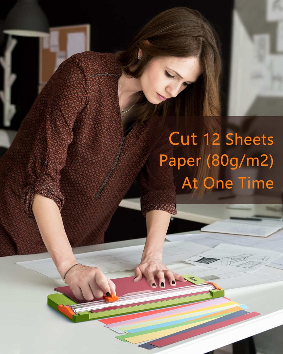 - Efficient Cutting: Cut A3, A4, A5 paper, photos, cards, laminated materials (within 1.5mm), and more. Cut up to 12 sheets of paper (80g/m2) at once for maximum efficiency