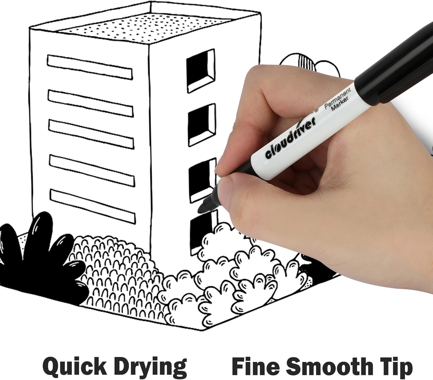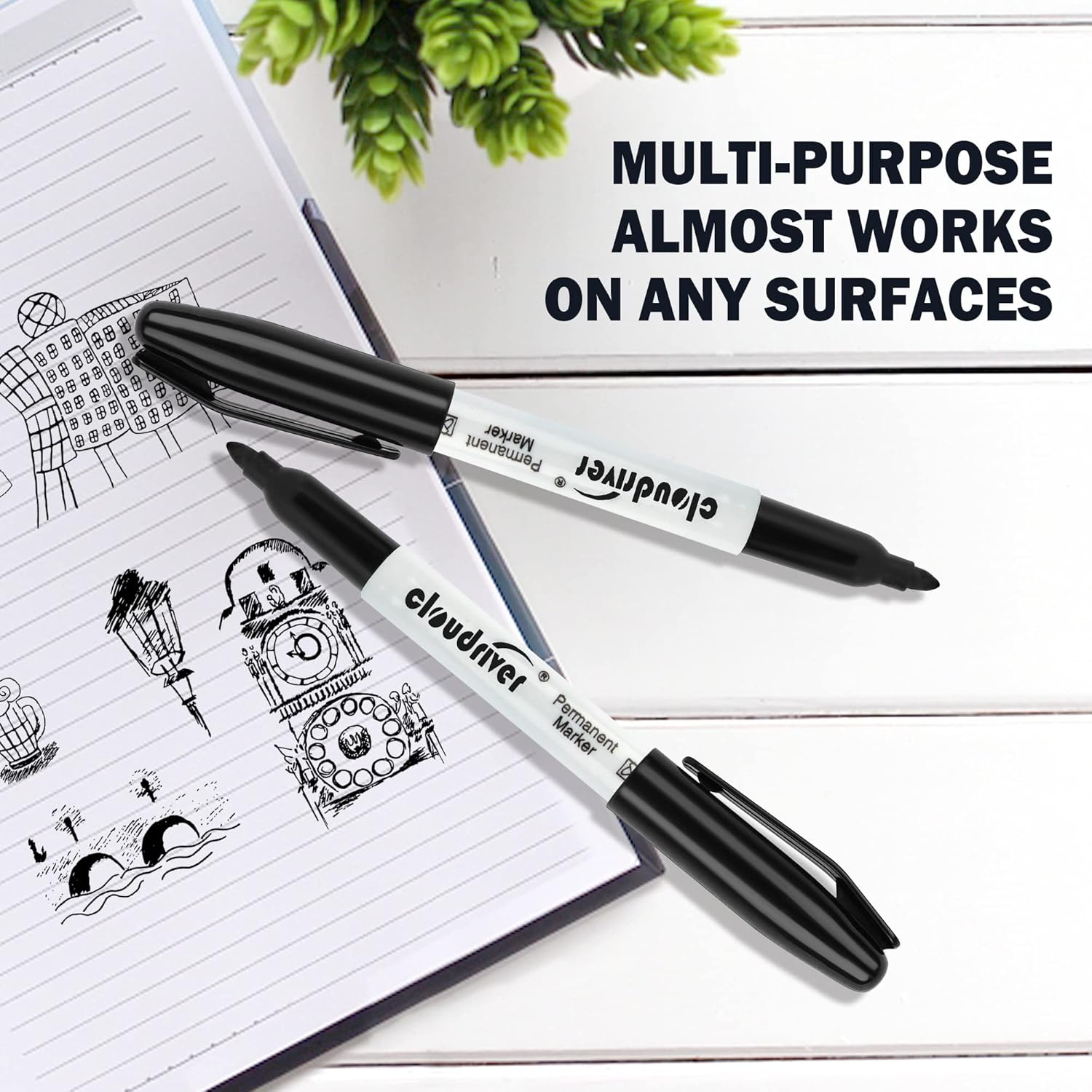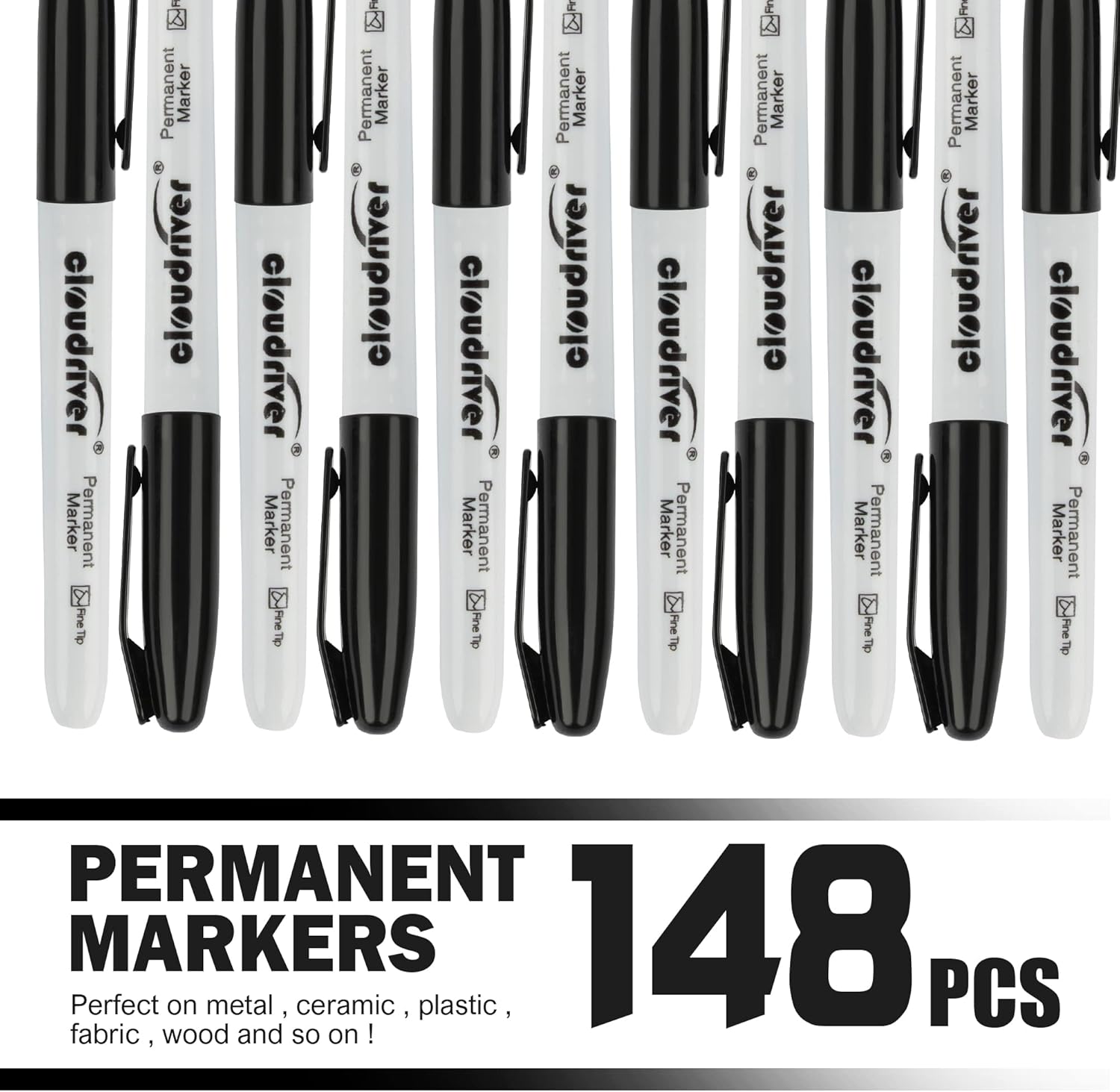 cloudriver Permanent Markers, 148 Pack Black Permanent Markers Set, Fine Point, Bulk Permant Markers Work on Wood, Plastic, Metal, Stone, Glass