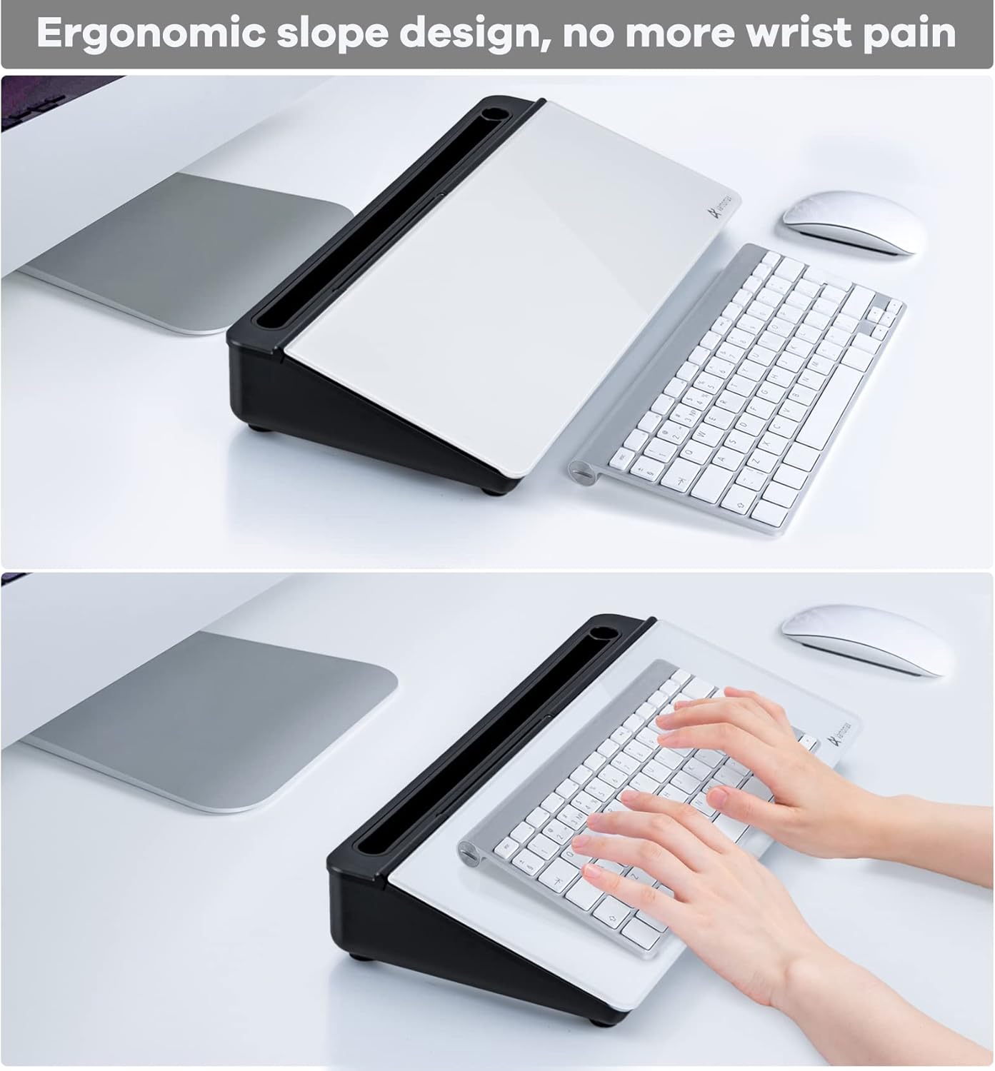 - Multi-function: Other than the glass board and built-in storage box, this product also has a slot on the top which can hold a phone or a tablet.