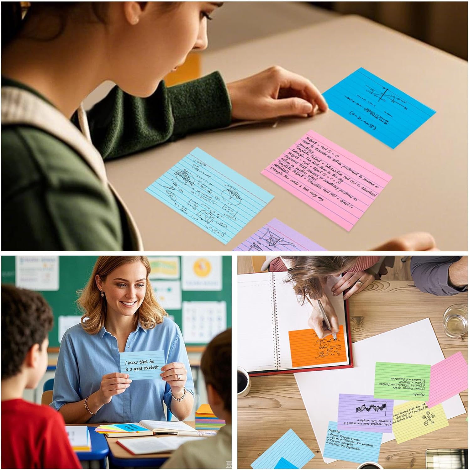 - Color Classification: Featuring 8 vibrant colors, these ruled index cards help you organize different subjects or topics (e.g., Red for Math, Blue for Science, Green for History). The color-coding system makes studying more structured and efficient, keeping your notes neat and organized