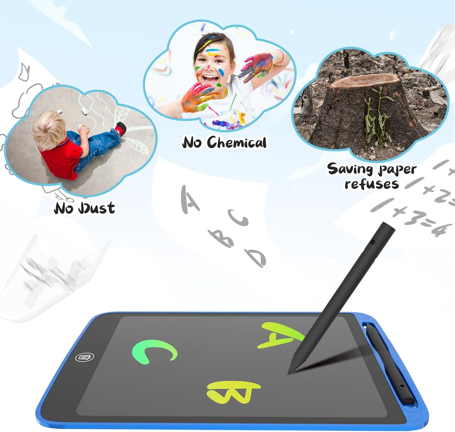 - 【Eye Protection】The kids' electronics writing tablet adopt lcd screen, no radiation, no glare, Its safe and comfortable when children use for a long time. The writing tablet provides a good place for kids to drawing, writing, graffiti, which can develop kid's imagination and practical ability